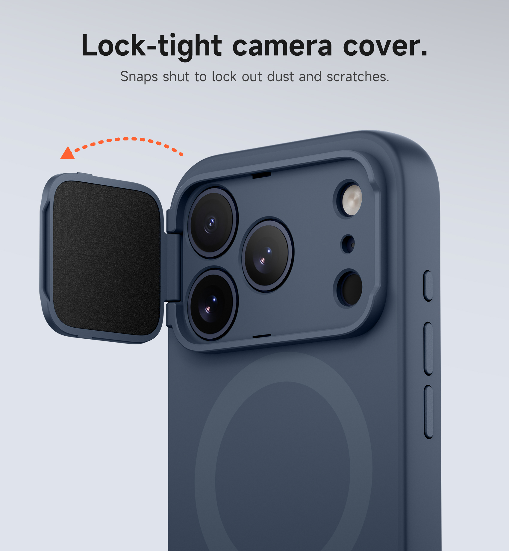 Óvja meg az iPhone 17 Pro Max értékes kameráját a portól és a karcolásoktól az innovatív, rögzíthető csúszó kameravédővel. Egyszerűen csúsztassa el a fedelet, amikor fotózni szeretne, majd zárja vissza, hogy teljes védelmet biztosítson a lencséknek, amikor épp nem használja őket. Ez a zárható megoldás megelőzi a por bejutását és a lencsék sérülését.