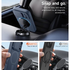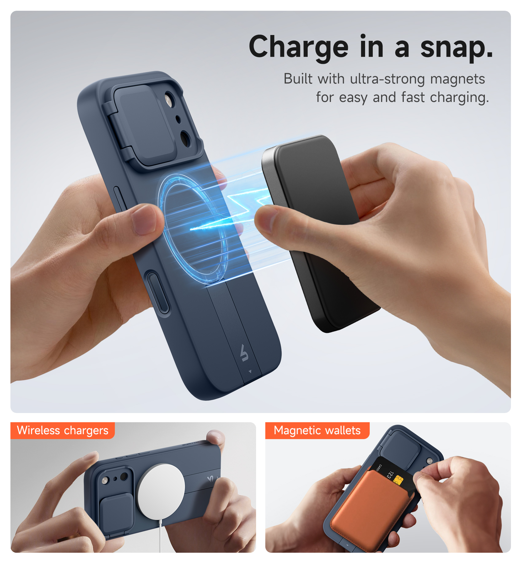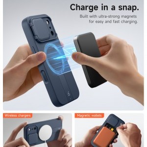 Élvezze a gyors és egyszerű MagSafe töltést az ultraerős beépített mágneseknek köszönhetően. Csatlakoztasson vezeték nélküli töltőket, mágneses pénztárcákat vagy más MagSafe kiegészítőket egy mozdulattal. A mágneses rögzítés stabil és megbízható, így aggodalmak nélkül használhatja kedvenc tartozékait, biztosítva a könnyű fel- és levételt anélkül, hogy a kiegészítő leesne.