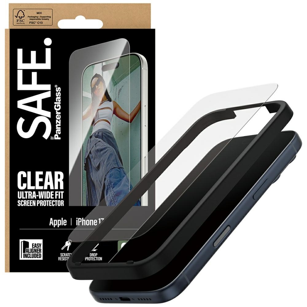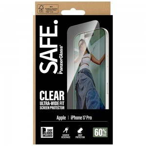 A SAFE. by PanzerGlass® Ultra-Wide Fit iPhone 17 számára védelmet nyújt a törések, karcolások és mindennapi balesetek ellen. 60%-ban újrahasznosított üvegből készült, légpárnaként nyeli el az ütéseket. Az oleofób bevonat csökkenti az ujjlenyomatokat, zsíros foltokat és szennyeződéseket.