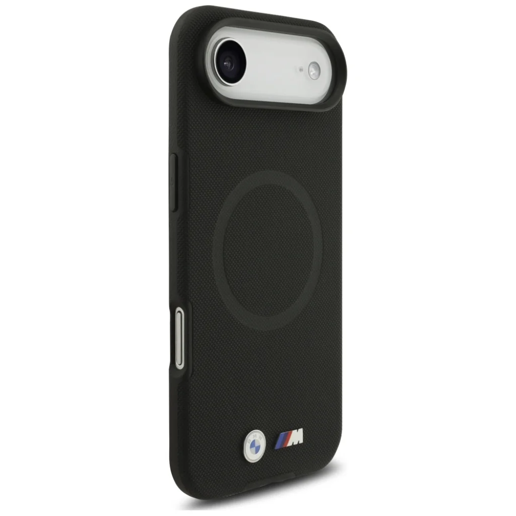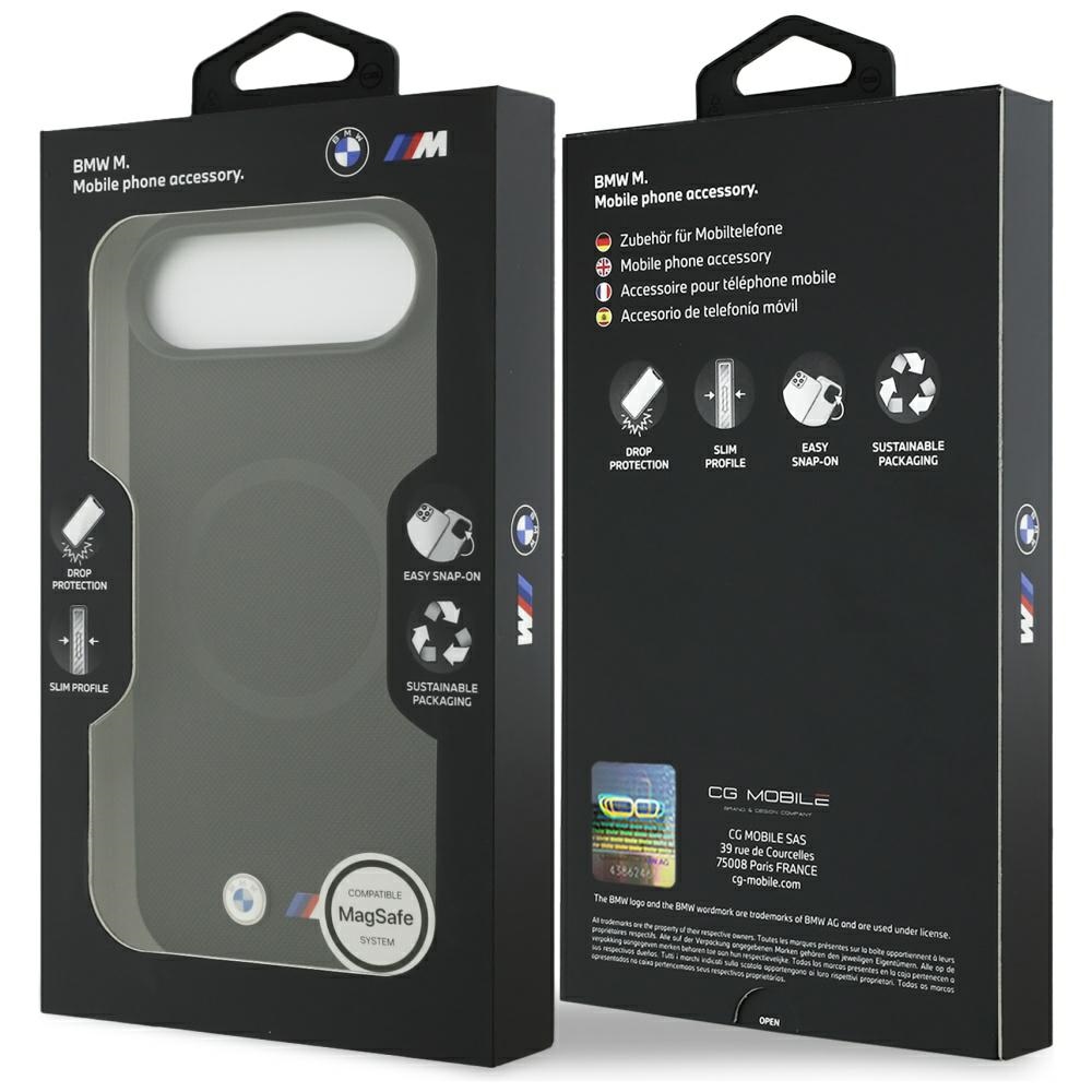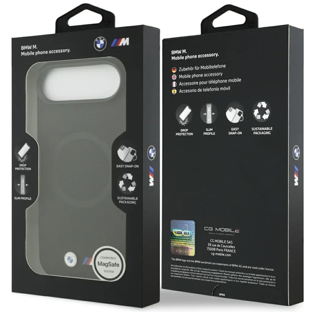 Egy exkluzív BMW tok az M FW Metal Logo MagSafe kollekcióból, amely egy prémium minőségű tok, amit a világ egyik leghíresebb autómárkája támogat. Tökéletes választás minden MagSafe technológiával rendelkező eszköz felhasználójának. Egyedülálló dizájn és kiváló minőség: A BMW M FW Metal Logo tok tartósságot és sportos jelleget ötvöz. Magas minőségű öko-bőrből készült, finom textúrával, ami biztos fogást és elegáns megjelenést biztosít. A hátoldalon található fém BMW M logó kiemeli a kollekció hitelességét és presztízsét. A tok teljes kompatibilitást kínál a MagSafe rendszerrel, hatékony ütésvédelmet, és karcsú profilt, ami tökéletesen illeszkedik a telefonhoz. Fekete kamerakeret és gombok modern és egységes megjelenést kölcsönöznek neki. Szilárd szerkezet és tökéletes illeszkedés: A tok rugalmas szerkezettel rendelkezik, így az oldalak puhák a gyors fel- és levételhez. Karcsú profilja fenntartja a telefon elegáns megjelenését, miközben hatékony ütésvédelmet biztosít. Enyhén megemelt élek a képernyő és kamera körül extra védelmet nyújtanak a karcolások ellen a mindennapi használat során. A tok tartalmazza a szükséges kivágásokat a portokhoz és integrált gombfedéseket, így biztosítva a teljes funkcionalitást. Töltse a telefonját vezeték nélkül! A tok mágneses gyűrűvel van felszerelve, ami kompatibilis a MagSafe vezeték nélküli töltővel, gyors és egyszerű töltést biztosítva. A tokba beépített mágnesek tökéletesen illeszkednek a felhasználó telefonjához, és erős, stabil kapcsolatot biztosítanak a MagSafe töltőhöz. A tokot hivatalos BMW licenc alapján gyártják. Műszaki adatok: Márka: BMW, Kollekció: M FW Metal Logo, Terméktípus: Védőtok, Anyag: Öko-bőr / PC / TPU, Szín: Fekete, Kompatibilitás: iPhone Air.