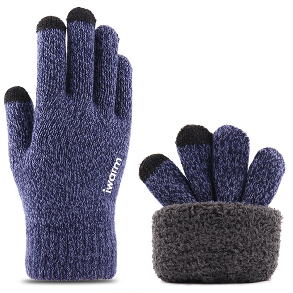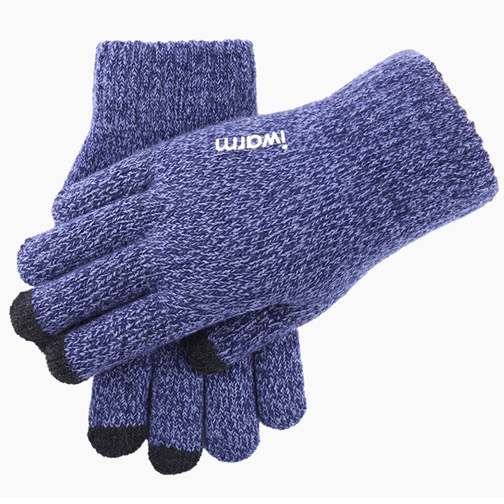 iWarm - Érintőképernyős kesztyűk (ST0018) - prémium gyapjú, csúszásmentes részletekkel, 23 cm-es méret - kék