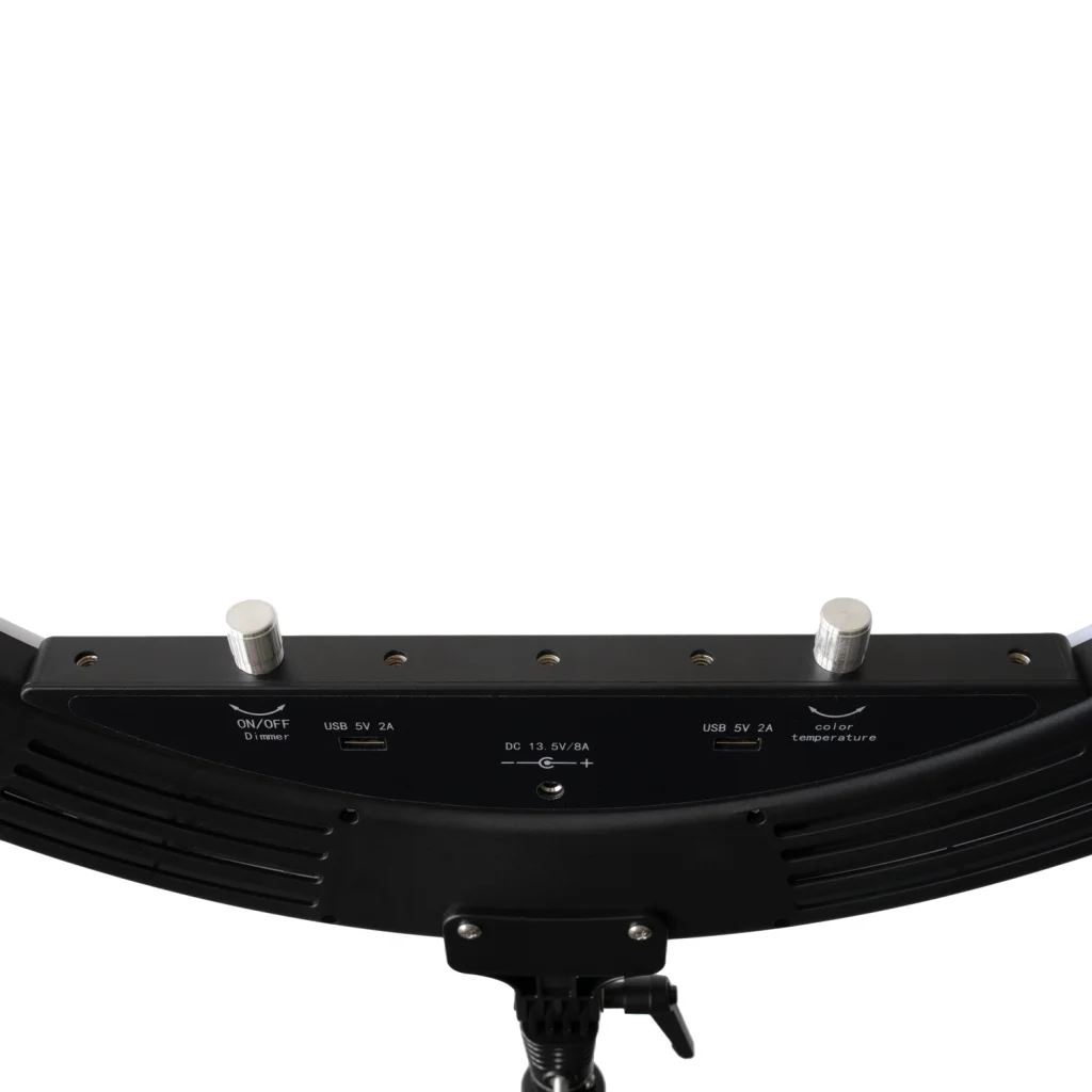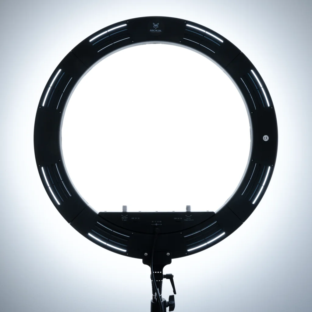 A Jackal LR63-120B körlámpába épített LED-ek elé egy diffúzor került, ezzel biztosítható a homogénebb megvilágítás. Dimmerel állítható a fényerő és a színhőmérséklet is. A színhőmérséklete 2700-tól 5500 kelvinig terjedhet, így hideg és meleg színhőmérsékletet is elérhetünk. A körfényen megtalálható két USB port is, amivel tölthetjük mobiltelefonunkat is, így használat közben sem merül le. A körfény közepén található 5x 1/4" menetbe bármilyen 1/4-es kiegészítőt, mobiltelefon tartót rögzíthetünk. Előszeretettel használják sminkesek és kozmetikusok is, mivel profi sminkes lámpáknál is nagyobb fényt ad. A hordtáska, távirányító illetve a 2.8 méteres állvány is a szett része!