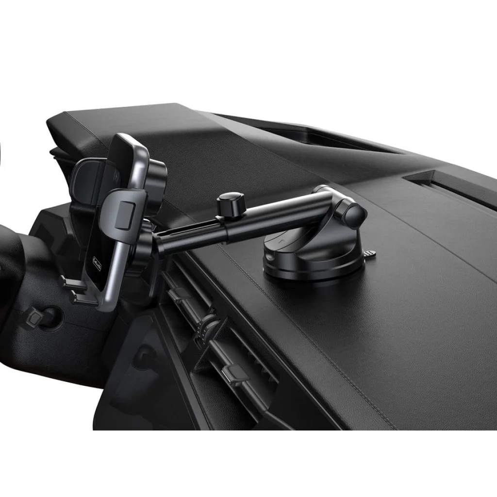 - Stabil és sokoldalú rögzítés: Az erős tapadókorongos alap lehetővé teszi a telefontartó biztonságos rögzítését mind a szélvédőn, mind a műszerfalon. A tartókar behúzható, hossza állítható, és 220°-os dönthetőséget biztosít az optimális elhelyezésért.