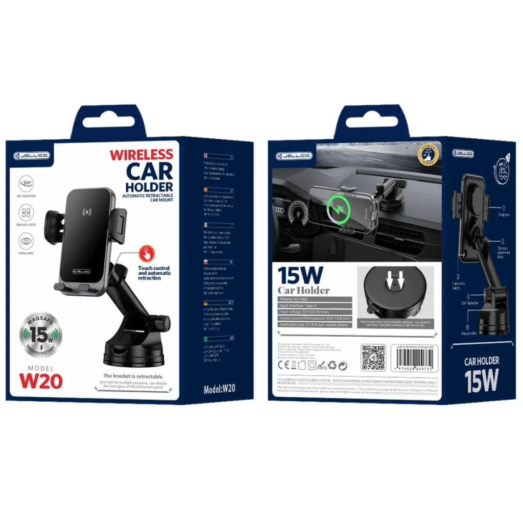 - Termék neve: JELLICO autós telefontartó vezeték nélküli töltéssel W20 15W
