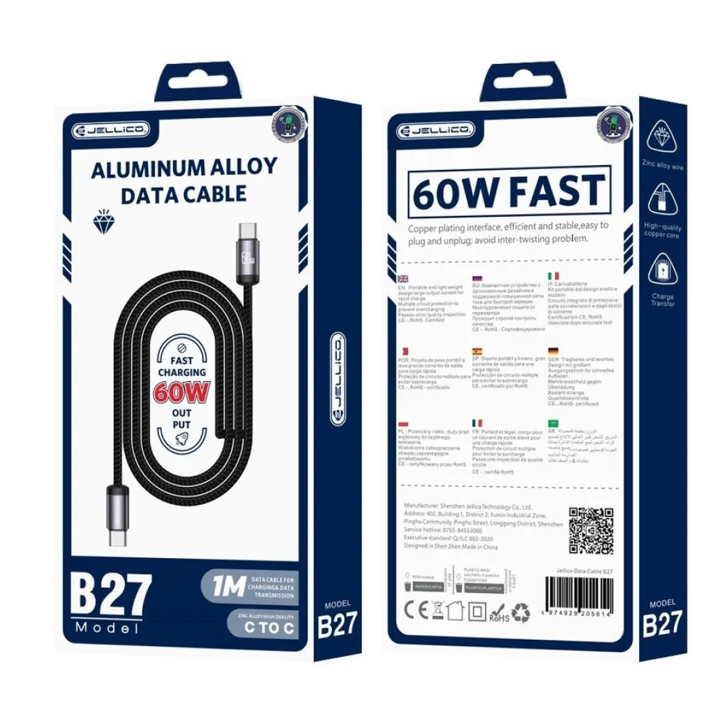 Válassza a Jellico B27 kábelt, ha egy megbízható, gyors és kiváló ár-érték arányú USB-C töltő- és adatátviteli megoldásra van szüksége!