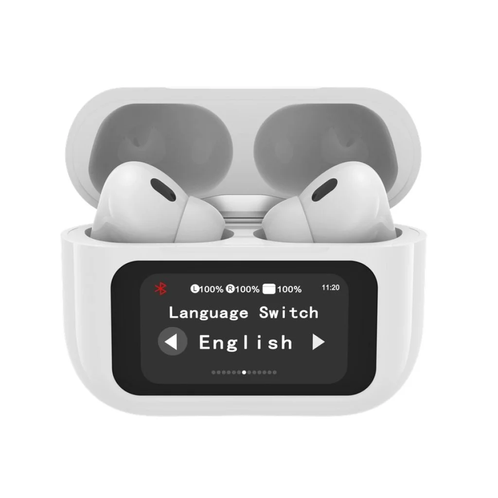 - Ez a kijelző valós időben mutatja mindkét fülhallgató (L/R) és maga a töltőtok akkumulátor töltöttségi szintjét, így sosem éri meglepetés. Emellett kényelmesen ellenőrizheti az aktuális időt, és az intelligens érintésvezérlés segítségével akár nyelvet is válthat a menüben.