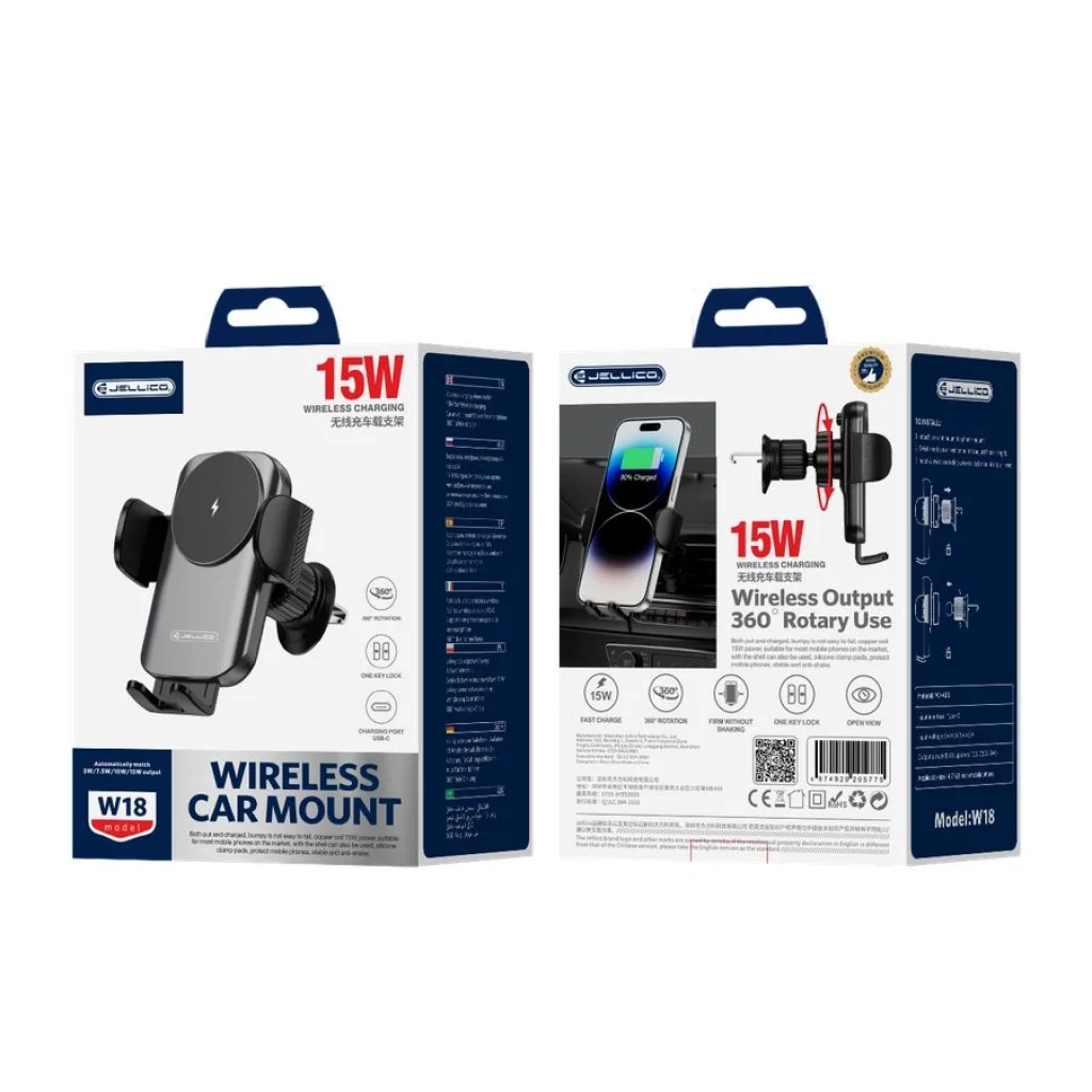 Jellico W18 autós telefontartó vezeték nélküli töltéssel 15w – Fekete
