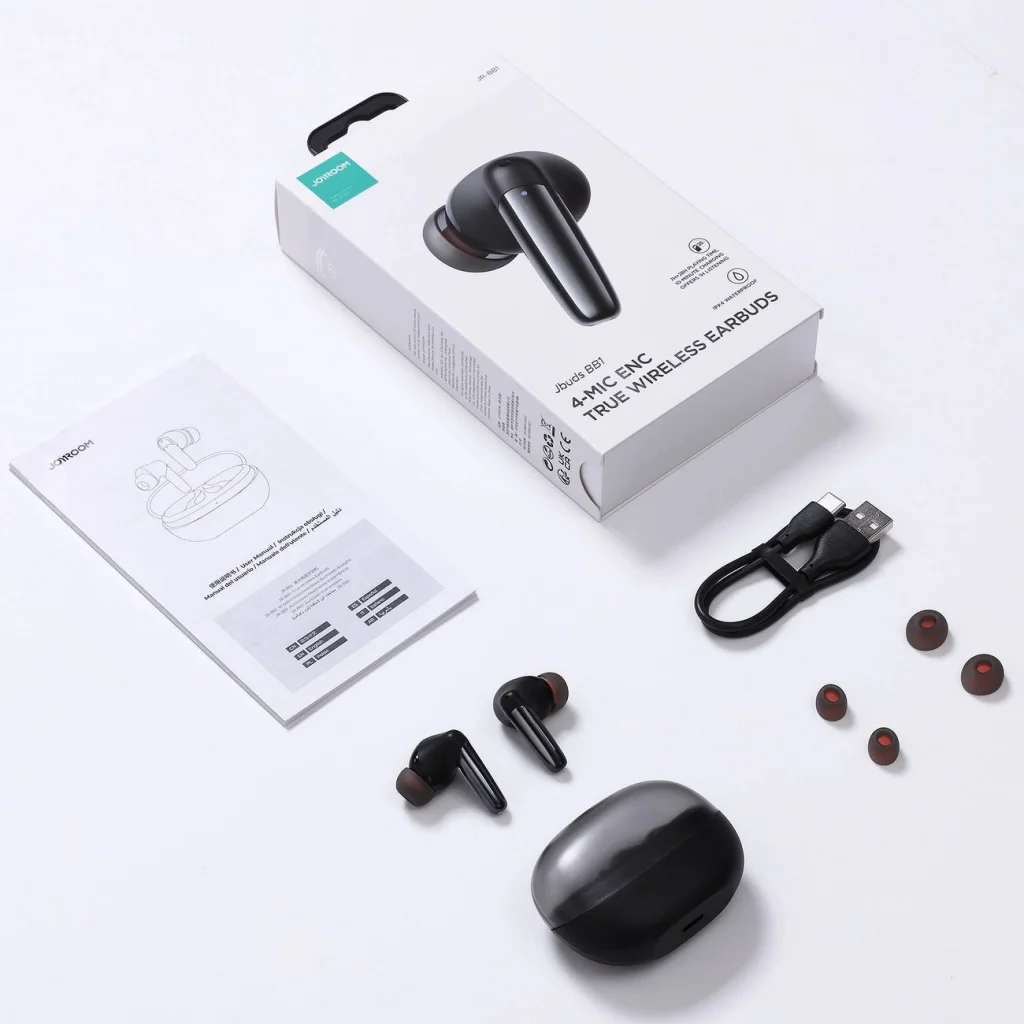 Joyroom Jbuds Series JR-BB1 TWS vezeték nélküli fülhallgató - fekete Merülj el a kiváló hangzás és a páratlan kényelem világában a forradalmi Joyroom Jbuds Series JR-BB1 fülhallgatókkal. Felejtsd el a hívások tökéletlenségeit, mivel az ENC zajcsökkentő technológia kristálytiszta hívásokat garantál. Élvezd a zenét megszakítás nélkül a beépített alacsony fogyasztású chipnek köszönhetően. A kép és a hang tökéletes szinkronizációja alacsony késleltetéssel életre kelti a szórakozást. Ezenkívül ergonomikus kialakítás, egyszerű kezelhetőség és ellenállóság az időjárás viszontagságaival szemben... Ezek a fülhallgatók újra belopják magukat a szívedbe! A Joyroom Jbuds Series JR-BB1 vezeték nélküli fülhallgatók legfontosabb előnyei: