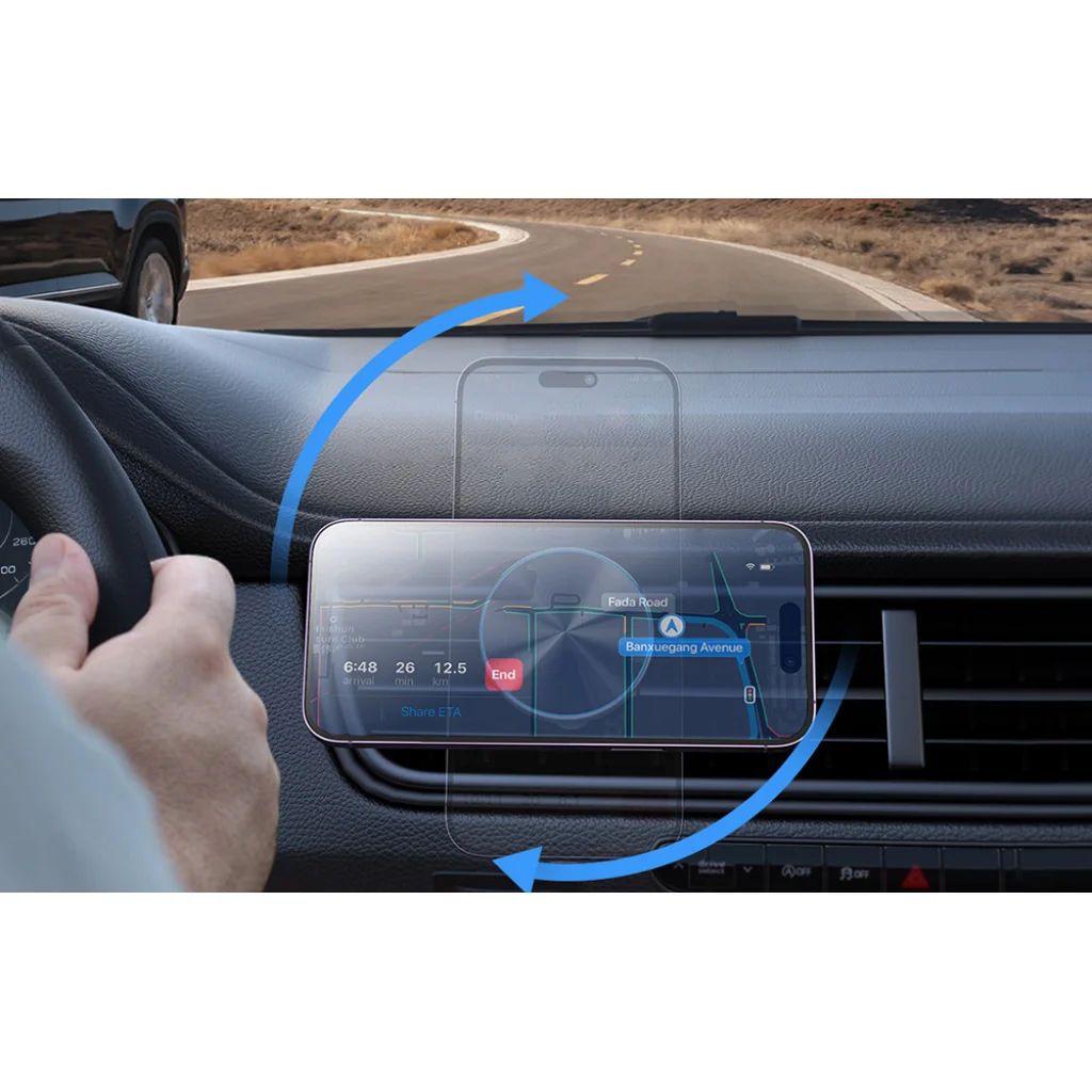 A tartó 22 neodímium mágnessel van felszerelve, biztosítva az okostelefon stabilitását. Nem kell amiatt aggódnia, hogy a készülék leesik vagy megsérül, még rázós utakon vagy egyenetlen felületeken sem. Szabadon elhelyezheti telefonját mind álló, mind fekvő módban. Ezenkívül az erős rögzítés gyors és stabil csatlakozást tesz lehetővé a szellőzőrácshoz.