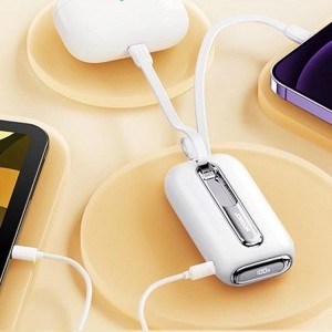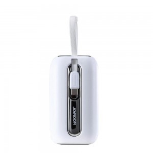 Erős 10000mAh kapacitású powerbank, akár 22.5 W teljesítménnyel és 2 beépített kábellel (USB C, Lightning) Joyroom Színes Sorozat JR-L012 – fehér. Készen áll a bőrönd az utazásra? Ne feledkezz meg a 10000mAh-s Joyroom Színes Sorozat JR-L012 power bankról! Ez a tökéletes eszköz, készen áll bármilyen utazásra. Nem kell aggódnod a telefonod töltéséhez szükséges energia vagy töltőkábelek miatt. Ez a powerbank 10000 mAh kapacitással rendelkezik, USB C porttal és két beépített kábellel: USB C és Lightning. Lehetővé teszi, hogy egyszerre három eszközt tölthess kényelmesen, és az akár 22.5 W teljesítmény sokkal gyorsabb energiaellátást biztosít. A Joyroom JR-L012 powerbank háza beépített kijelzővel rendelkezik, amely megmutatja, mennyi energia maradt a powerbankban. Könnyű, vékony és kompakt kialakítású. Kompatibilitás? Ezen sem kell aggódnod. Használhatod telefonod, okosórád, fejhallgatód vagy okoskarkötőd töltéséhez – függetlenül attól, hogy milyen rendszeren fut.