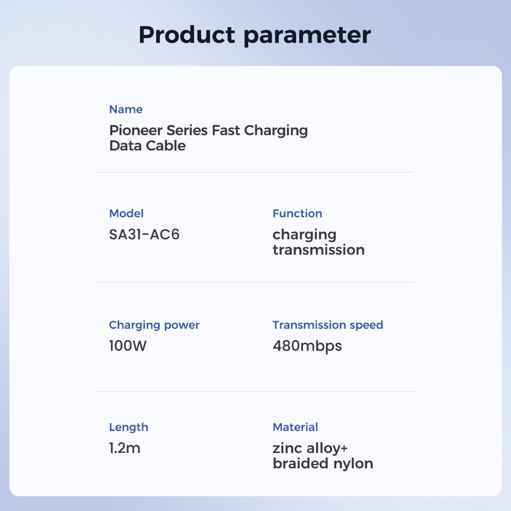 Megbízható energiára van szükséged a tablethez és telefonhoz? A Joyroom Pioneer Series USB-A / USB-C kábel a válasz az igényeidre. 100W teljesítménnyel gyorsan feltöltheted az eszközeidet pillanatok alatt. Ez egy átfogó megoldás az összes töltési igényedhez.