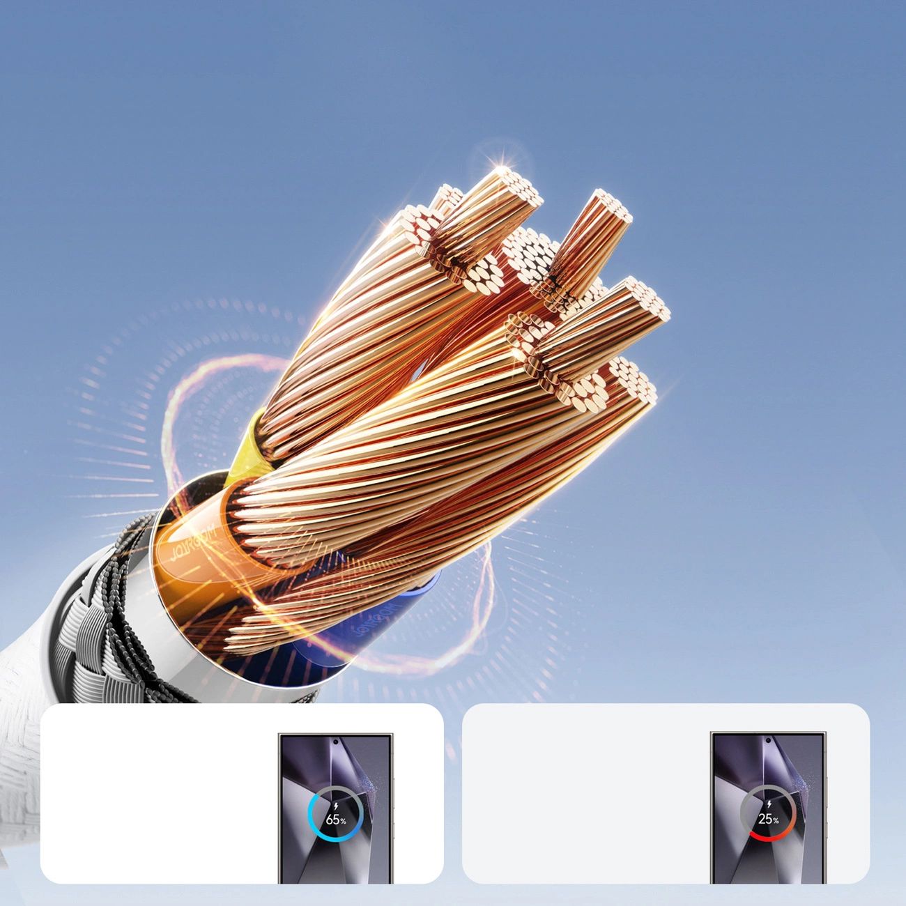 A Joyroom S-A28 Flash sorozatú kábel egy robusztus kiegészítő a gyors töltéshez és adatátvitelhez. 1 méter hosszúságával tökéletes mindennapi használatra – otthon, irodában vagy útközben. Tartós felépítése fonott nejlonból és alumínium csatlakozókból készült, ellenáll a sérüléseknek és hosszú élettartamot biztosít. A kábel akár 3A áramot is támogat, lehetővé téve a legtöbb okostelefon és tablet gyors töltését, míg a 480 Mbps adatátvitel sima fájlszinkronizálást biztosít.