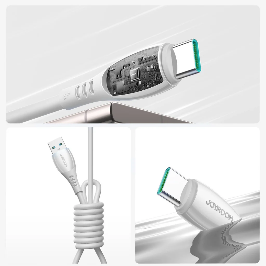 A Joyroom S-A59 Vibrant Series kábel egy praktikus kiegészítő USB-C porttal rendelkező eszközök töltéséhez és adatátviteléhez. Támogatja a gyors töltést akár 3A-ig és az adatátviteli sebességet akár 480 Mbps-ig. A 1,2 m hosszúság kényelmes használatot biztosít otthon, irodában és útközben. Robusztus TPE szerkezete növeli a tartósságot és az ellenállást a mindennapi hajlítással szemben.