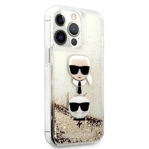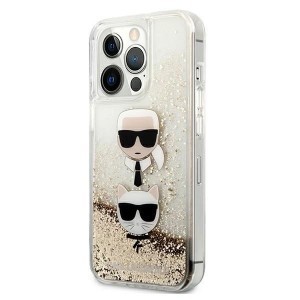 Karl Lagerfeld - Liquid Glitter Karl & Choupette Exkluzív védőtok kollekció - Liquid Glitter Karl & Choupette. A tokok egyedi sorozata azoknak a nőknek készült, akik szeretik a csillogást, ragyogást, kiemelkedni a tömegből, luxusérzetet és megjelenést szeretnének. Az egyedi tokot Karl és a macskája, Choupette bájos grafikája díszíti, amelyet folyékony, csillogó glitter részecskék emelnek ki, amelyek elrendezése a dőlési szög változásának hatására változik. A tok hátulja polikarbonátból készült, amelyet egy finom TPU réteg borít a grafikák védelme érdekében, és a szélek rugalmas poliuretánból készültek, ami megkönnyíti a telepítést. A tok, amellett hogy rendkívüli vizuális hatásokat nyújt, garantálja az iPhone biztonságát, és divatos, stílusos megjelenést biztosít bármilyen alkalomhoz. Kollekció: Liquid Glitter Karl & Choupette. Típus: Kemény tok. Anyag: TPU/PC. Szín: Arany. Kompatibilitás: iPhone 13 Pro Max 6.7".