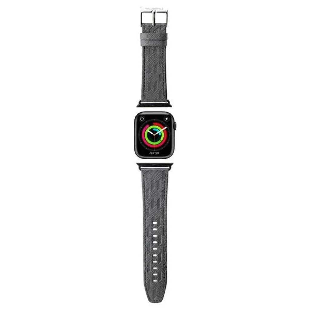 Karl Lagerfeld Saffiano Monogram - Egy divatos és rendkívül stílusos szíj az Apple Watch okosórához, amelyet a Karl Lagerfeld divatház jegyez. Az kiegészítő az Apple Watch 38/40/41 mm-es átmérőjű tokhoz lett tervezve. A szíj egyénileg állítható a csuklókörfogathoz egy kiváló minőségű rozsdamentes acélból készült csat segítségével. A Saffiano Monogram szíj két univerzális színben elérhető, így szinte bármilyen stílushoz illeszkedik, és tökéletesen passzol bármely Apple Watch tokhoz, függetlenül annak színétől. A szíj visszafogott színei kifejezővé és hatékonnyá teszik ezt a kiegészítőt. A szíjat magas minőségű Saffiano bőrből készítették. Ez az anyag rendkívül ellenálló a mechanikai sérülésekkel és karcolásokkal szemben, valamint ellenáll a szennyeződésnek és a nedvességnek. A Saffiano bőr használata rendkívül tartóssá teszi a szíjat, és nem okoz kényelmetlenséget a mindennapi használat során. Ez az egyedi Apple Watch szíj a híres tervező dombornyomott monogrammjával díszített - ezek alkalmazásának köszönhetően az Apple Watch-od irigylésre méltó díszítéssé válik bárki számára, aki értékeli a luxus kiegészítőket. Ugyanakkor ezzel a kiegészítővel kifejezheted kötődésedet egy exkluzív divatmárkához. A termék a Karl Lagerfeld márka licencének keretében készült. Műszaki adatok: Kollekció: Saffiano Monogram Típus: Apple Watch szíj Anyaga: Műbőr/Rozsdamentes acél Szín: Ezüst Kompatibilitás: Apple Watch 38/40/41mm Sorozat 1/2/3/4/5/6/7/8/9/SE/SE2/Ultra/Ultra2.