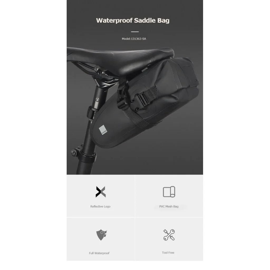1 literes cipzáras kerékpártáska. Ez egy funkcionális huzat, amelyet a kerékpárülés alá való szerelésre terveztek. Lehetővé teszi a tartozékok, kerékpár-eszközök és okostelefon biztonságos szállítását.