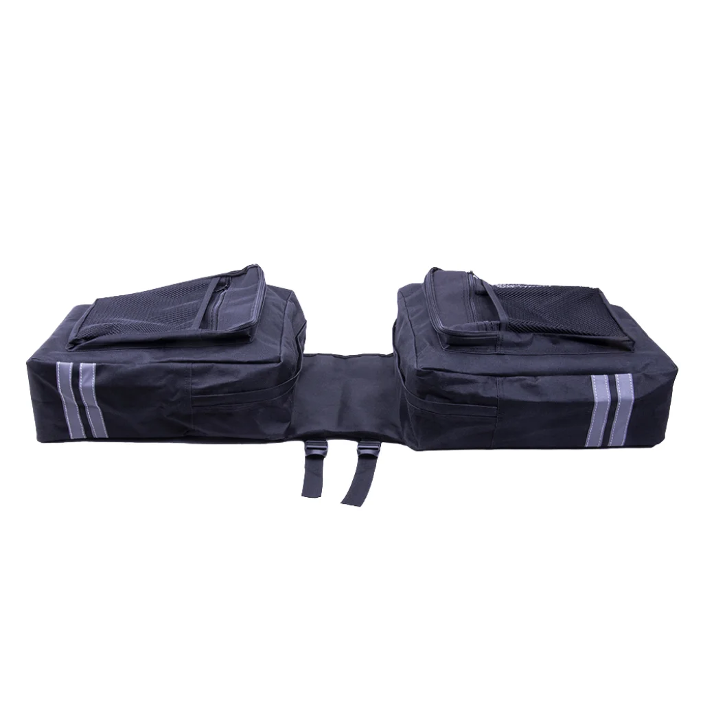 Kerékpártáska csomagtartóra rögzíthető. Két tágas, egyenként 12 literes zseb lehetővé teszi, hogy minden szükséges dolgot szállítson a biciklitúra során. Ezenkívül mindkét oldalon két kisebb zseb található apró tárgyaknak. A táska hátulja fényvisszaverő anyaggal van díszítve. A táska ellenáll a fröccsenésnek és az enyhe esőnek. Illeszkedik a legtöbb piacon elérhető csomagtartóra.