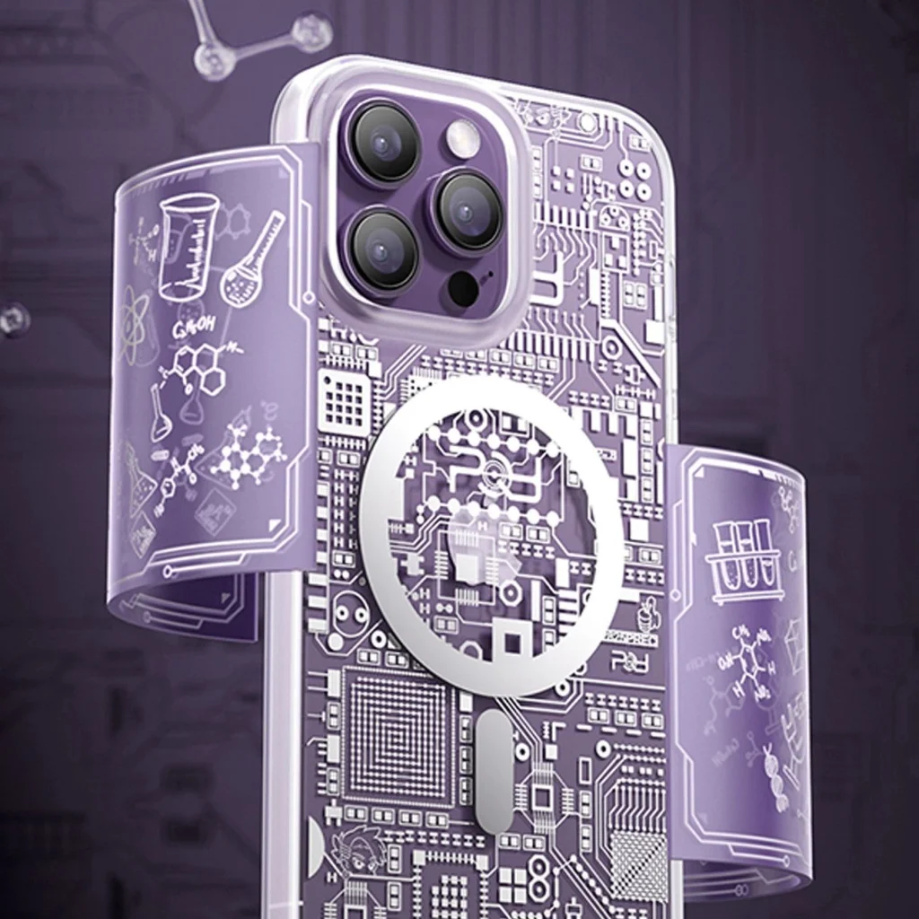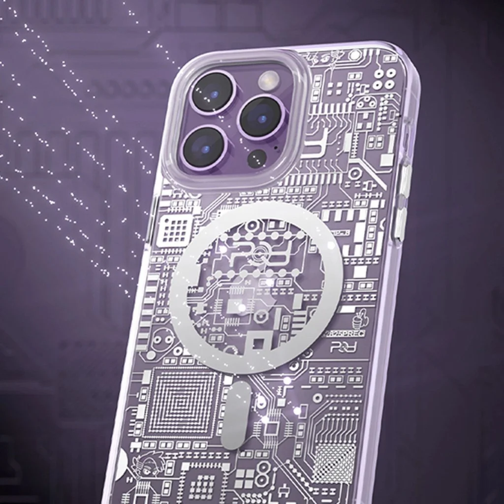 Kingxbar PQY Geek Series mágneses tok iPhone 14 Pro Max-hoz MagSafe technológiával ezüst színben Egy valódi geek számára! Ez az átlátszó telefontok egy nyomtatott áramkör textúrája által inspirált. Tartós műanyagból készült, hatékonyan védi a készüléket az esések következményeitől. Támogatja a MagSafe technológiát, amely lehetővé teszi a vezeték nélküli töltést. A kontrasztos színű fémből készült gombok modern megjelenést kölcsönöznek ennek a toknak. A tok az iPhone 14 Pro Max-hoz van igazítva, tökéletesen védi a telefont a sérülésektől, például esés vagy karcolás (például zsebben hordott kulcsok) esetén. A kijelző és a hátsó kamera körüli megemelt élek megvédik a telefont ezektől az elemek sérülésétől, amikor sík felületre van helyezve. Érzékeny gombokkal és portoknak készített kivágással rendelkezik. Tökéletes azok számára, akik értékelik a stílust, minőséget és szeretnének gondoskodni készülékükről. Műszaki adatok: