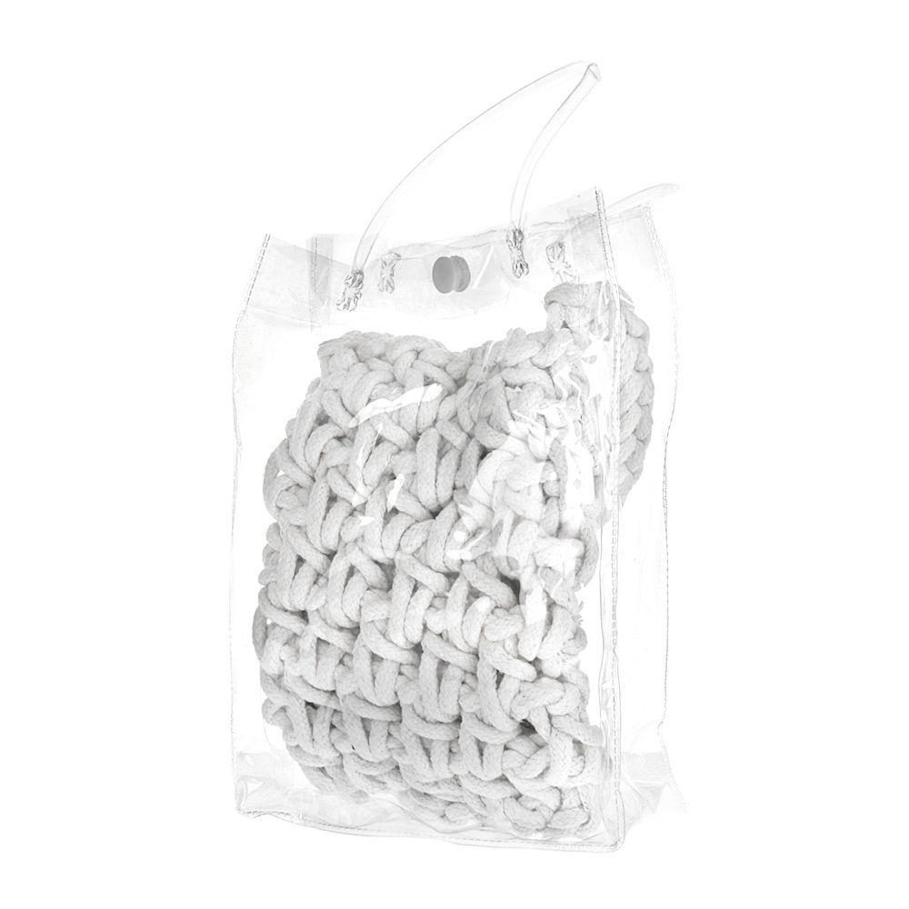 - Kézzel szőtt dizájn – Vastag fonalból készült, stílusos makraméra emlékeztető horgolt mintával.