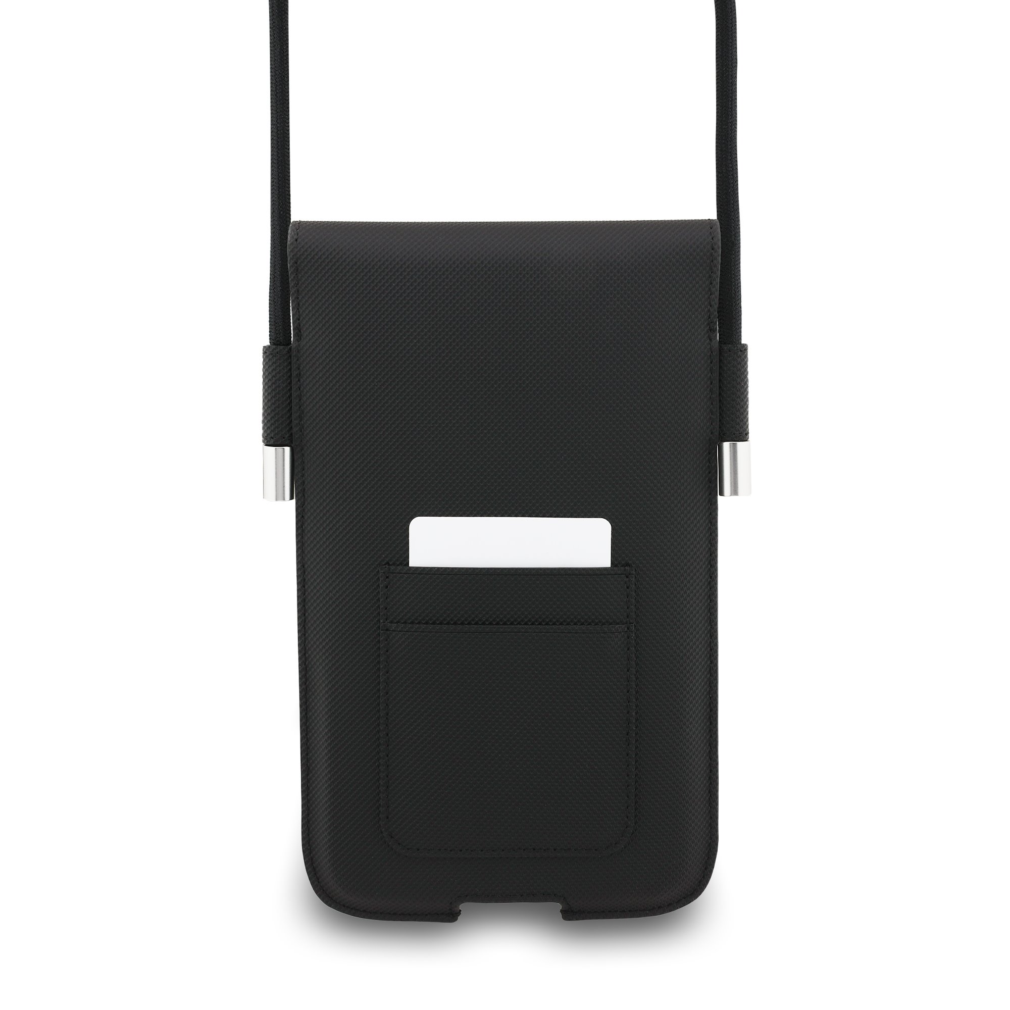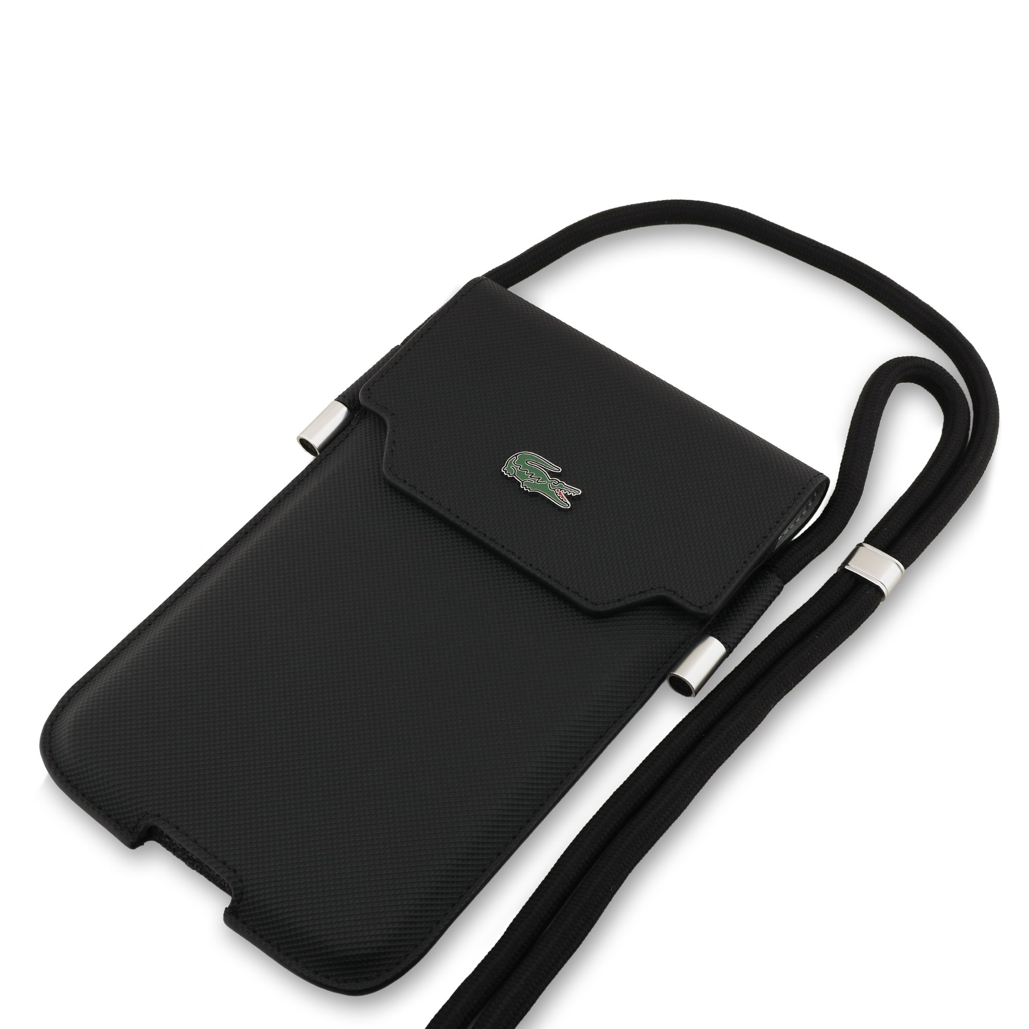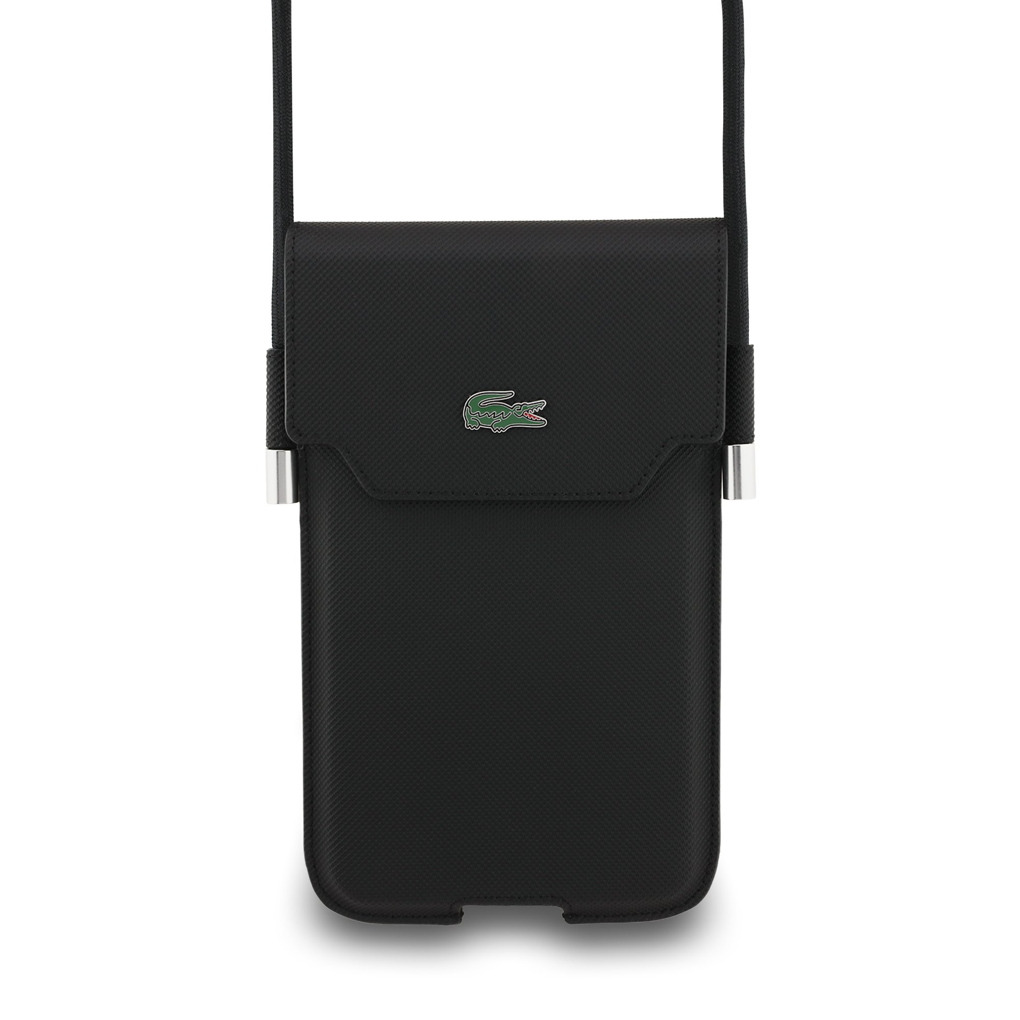A Lacoste PVC Iconic Petit Pique Metal Logo Phone Pocket XL elég tágas ahhoz, hogy akár egy iPhone 17 Pro Max vagy Galaxy S25 Ultra méretű telefont, valamint más kisebb telefonmodelleket is elférjen benne.