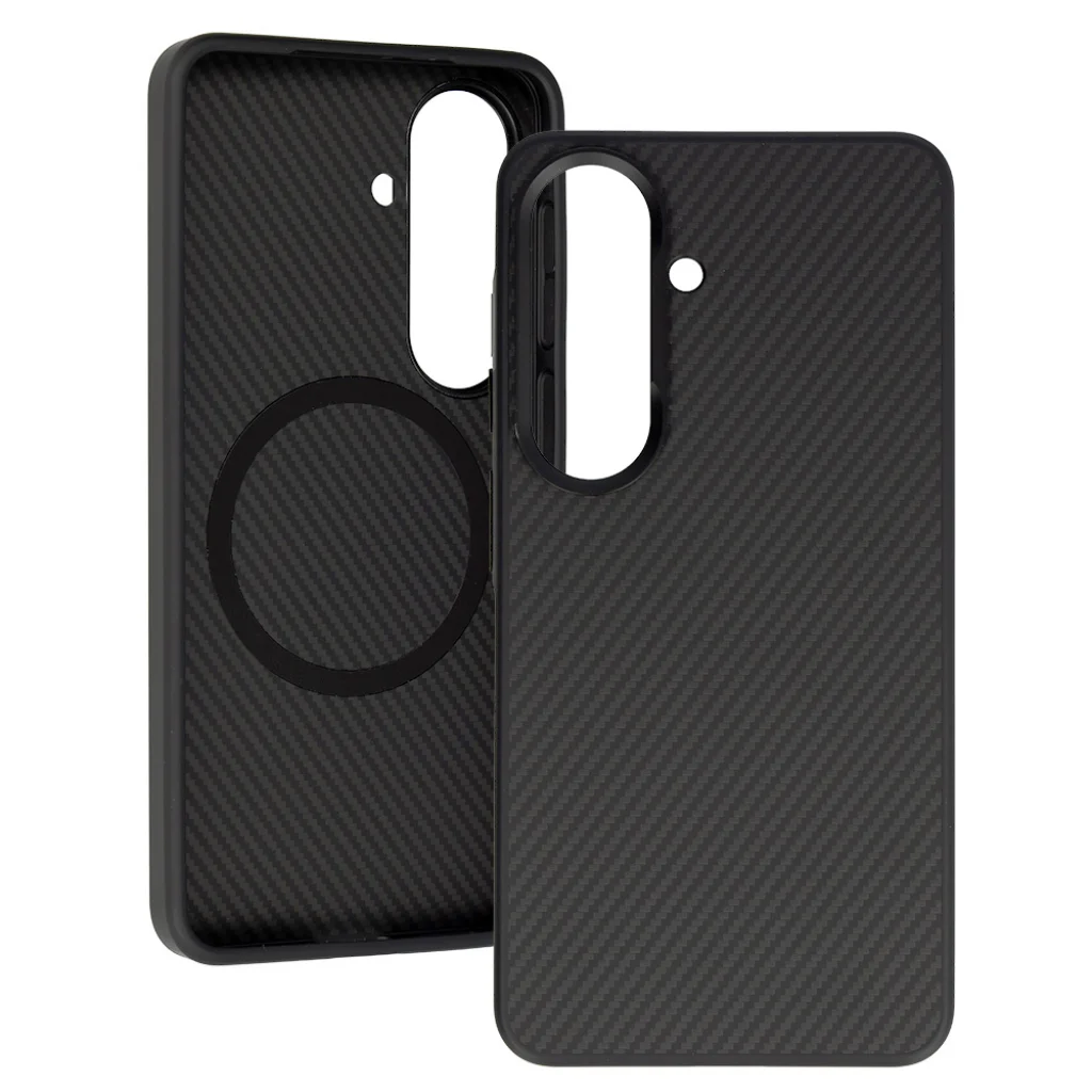 - Kifinomult karbon megjelenés: A tok prémium szénszálas textúrája nemcsak elegáns, de fokozza a fogást és segít elrejteni a mindennapi használat során keletkező mikrokarcokat. A karcsú forma ellenére megbízható teljesítményt nyújt a mindennapokban.