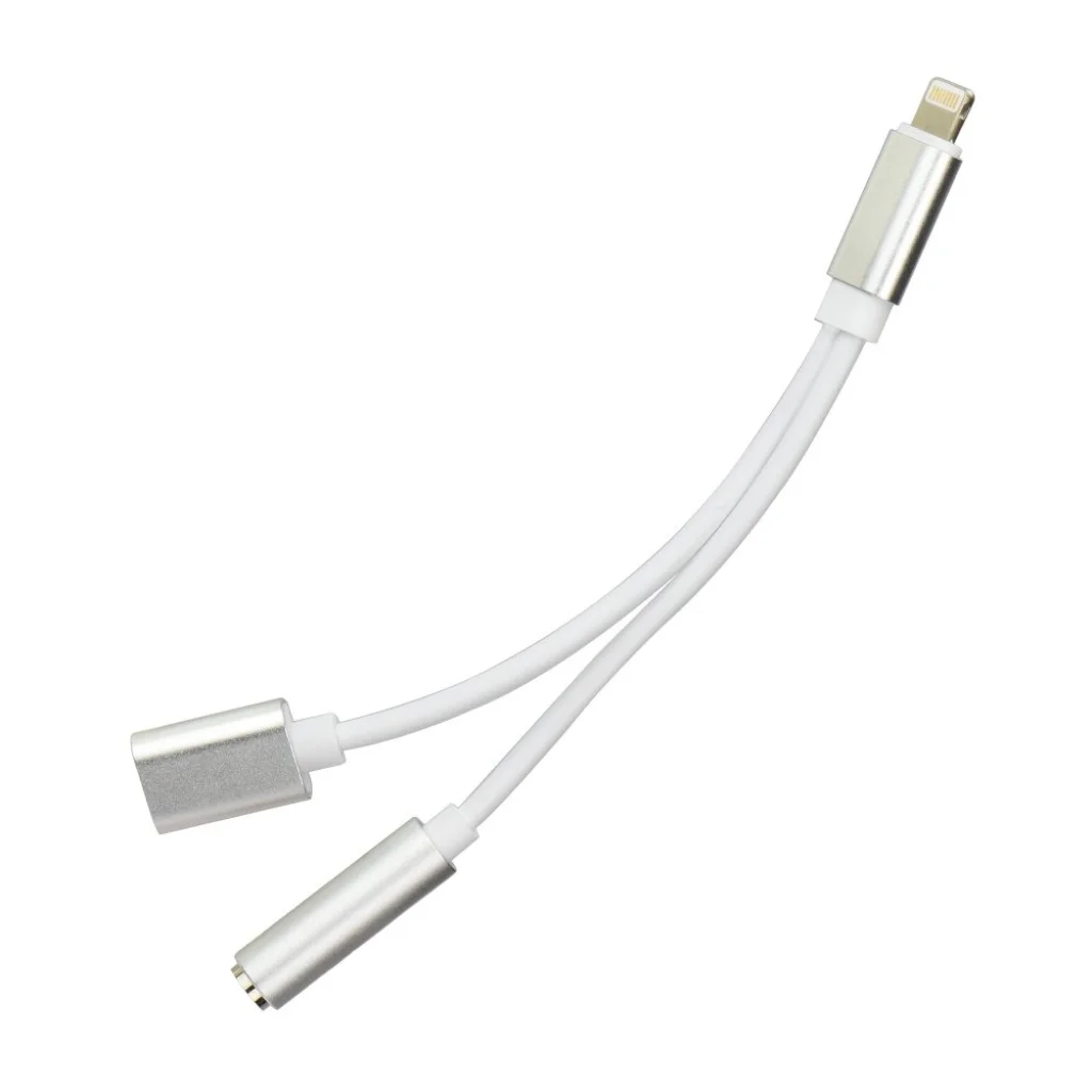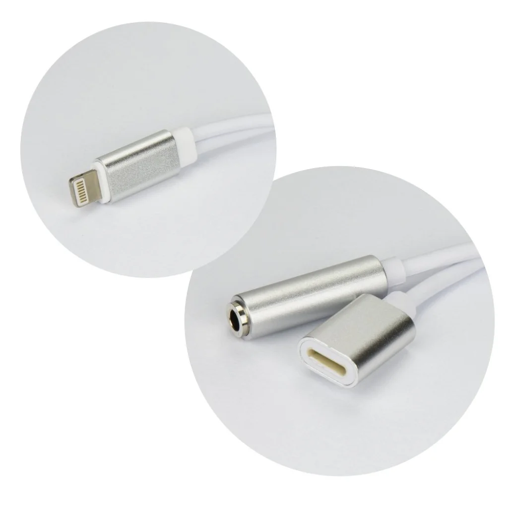 Lightning port elosztó adapter, amivel minden csatlakozási lehetőséget kihasználhatsz olyan iPhoneokon amiken nincs 3.5 mm jack audio csatlakozó.