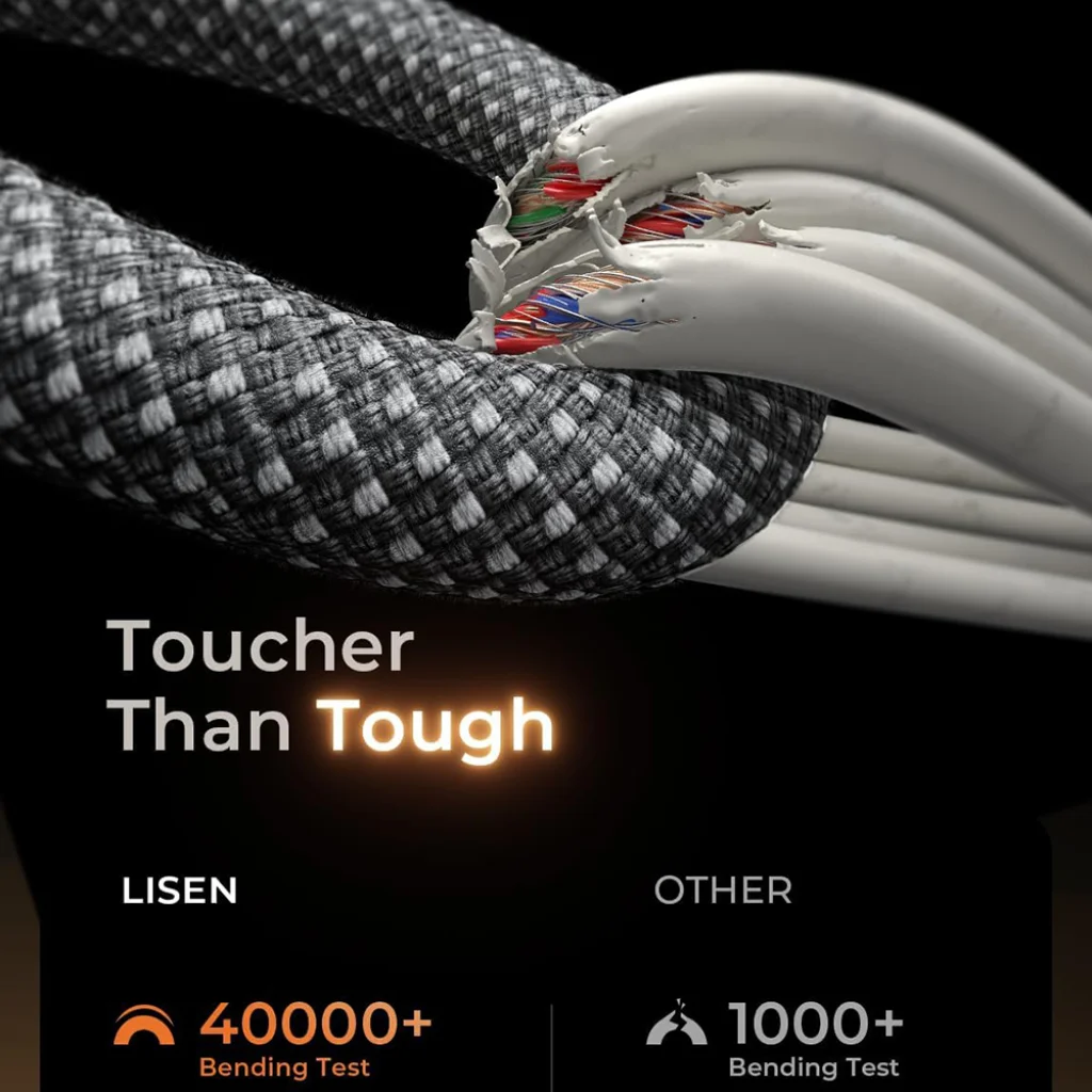 A Lisen kábelek tervezésekor a tartósság volt az elsődleges szempont. Élvezze a hosszan tartó és megbízható teljesítményt, köszönhetően a prémium anyagoknak és a fejlett gyártási technológiáknak: