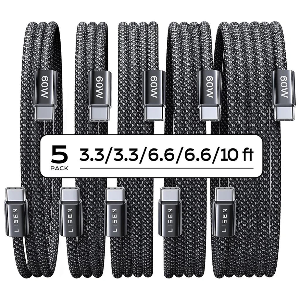 - 5 darabos szett: Egyetlen csomagban 5 darab Type-C kábel, ami teljes rugalmasságot biztosít minden eszközéhez és helyiségéhez.