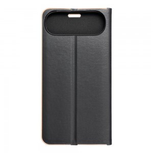 Az tok külseje vonzó textúrájú, kellemes tapintású anyagból készült, amely luxus érzetet kölcsönöz. A tokot körülölelő elegáns arany színű fém keret nemcsak stílusos megjelenést biztosít, hanem jelentősen növeli a telefon ütés- és karcállóságát, különösen az éleknél. Ez a fém és az anyag kombinációja egyedi és modern összképet alkot.