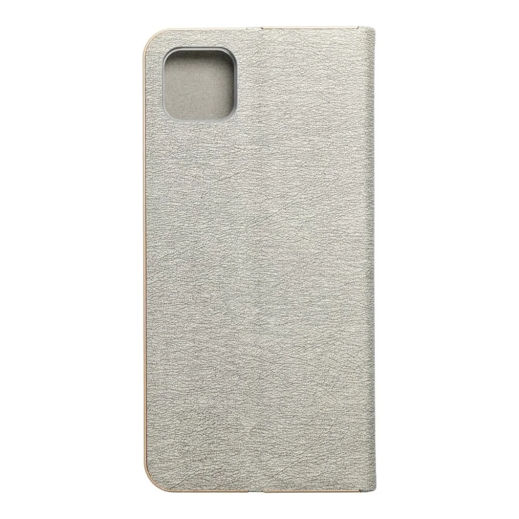 Elegáns tok fémes kerettel a telefon fokozott védelme érdekében. A vonzó textúra és a kellemes tapintású anyag stílusos tokot hoz létre, amely kiemeli a készülék modern kialakítását. A puha velúr anyag belül és a tartó részén védi a készüléket mindkét oldalról a sérülésektől és karcolásoktól. A fogantyú rugalmas szilikonból készült, és kivágásokkal rendelkezik. Az alumínium keret a széleken erősebbé teszi a tokot, és még jobban védi a készüléket. A fém és az eredeti anyag kombinációja egyedi és modern összeállítást hoz létre, amelynek köszönhetően a készülék stílusos és elegáns megjelenést nyújt. A tok kisméretű zsebet is tartalmaz a praktikus iratok vagy bankjegyek számára. A tok vízszintes állvánnyá alakítható filmek vagy fényképek nézéséhez. Erős mágnes biztosítja a könnyű záródást és nyitást, valamint megakadályozza a véletlen kinyílást.