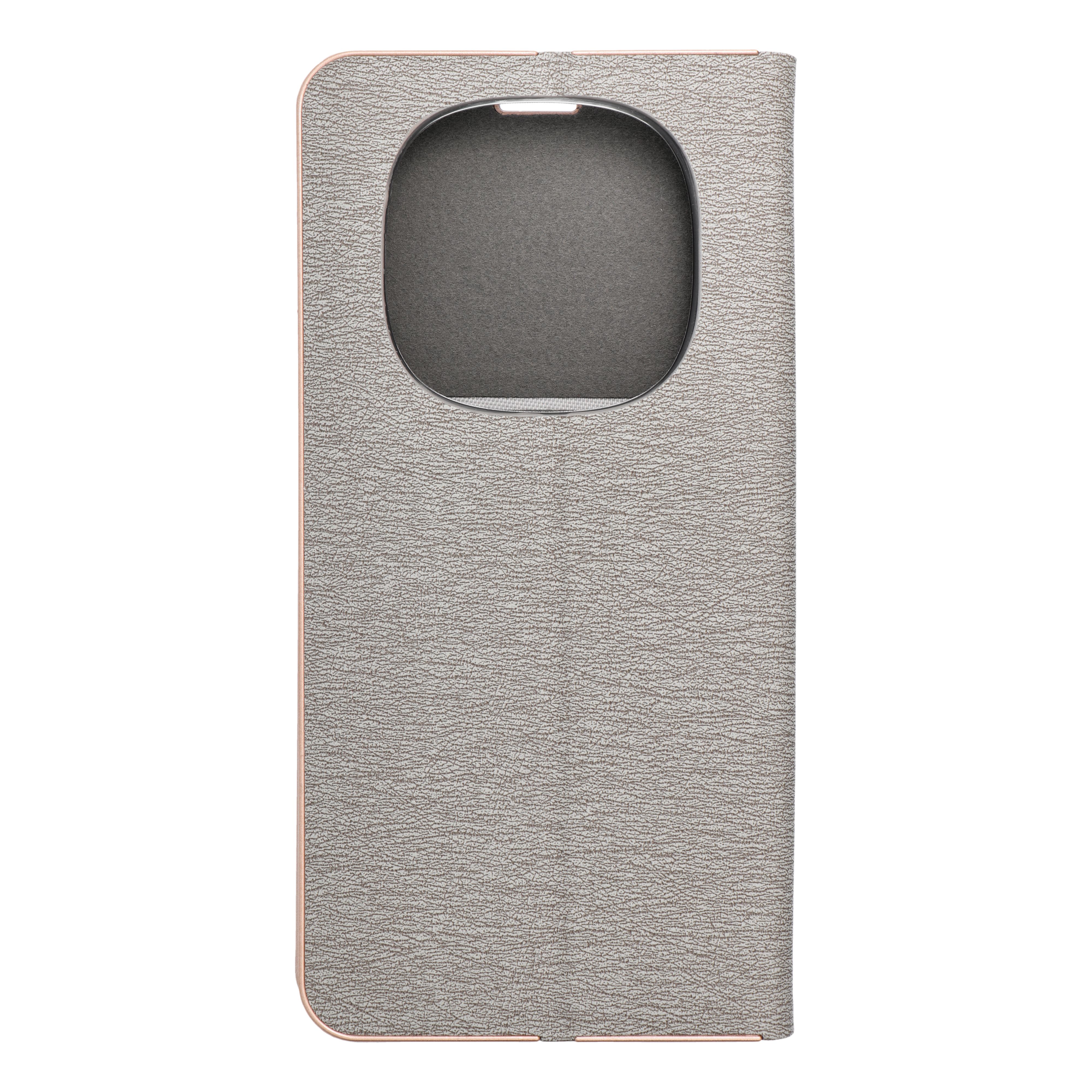 Elegáns tok fém kerettel a telefon fokozott védelméért. A vonzó textúra és a kellemes tapintású anyag egy stílusos tokot hoz létre, amely kiemeli a készülék modern kialakítását. A belső rész és a tartórész puha velúr anyagból készült, így a készülék mindkét oldalról védve van a sérülésektől és karcolásoktól. A tartó rugalmas szilikonból készült és kivágásokkal rendelkezik. Az alumínium keret az éleken erősebbé teszi a tokot, és még inkább védi a készüléket. A fém és az eredeti anyag kombinációja egyedi és modern kompozíciót hoz létre, amelytől a készülék stílusos és elegáns benyomást kelt. A tokban található egy kis zseb hasznos dokumentumok vagy bankjegyek számára. A tok vízszintes állvánnyá alakítható filmek vagy fényképek nézéséhez. Egy erős mágnes biztosítja a könnyű zárást és nyitást, valamint megakadályozza a véletlen kinyílást.