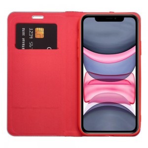 Elegáns tok fémkerettel a telefon fokozott védelméért. A vonzó textúra és a kellemes tapintású anyag stílusos tokot hoz létre, amely kihangsúlyozza a készülék modern tervezését. A puha velúr anyag a belső és tartórésznél mindkét oldalról megvédi a készüléket a sérülésektől és karcolásoktól. A fogantyú rugalmas szilikonból készült és kivágásokkal rendelkezik. Az alumínium keret a széleken megerősíti a tokot és még jobban védi a készüléket. A fém és az eredeti anyag kombinációja egyedi és modern kompozíciót hoz létre, melynek köszönhetően a készülék stílusos és elegáns megjelenést kap. A tok egy kis zsebbel is rendelkezik praktikus dokumentumok vagy bankjegyek számára. A tok egy vízszintes talpból áll, filmek vagy fényképek nézéséhez. Egy erős mágnes biztosítja a tok könnyű zárását és nyitását, valamint megakadályozza a véletlenszerű kinyitást.