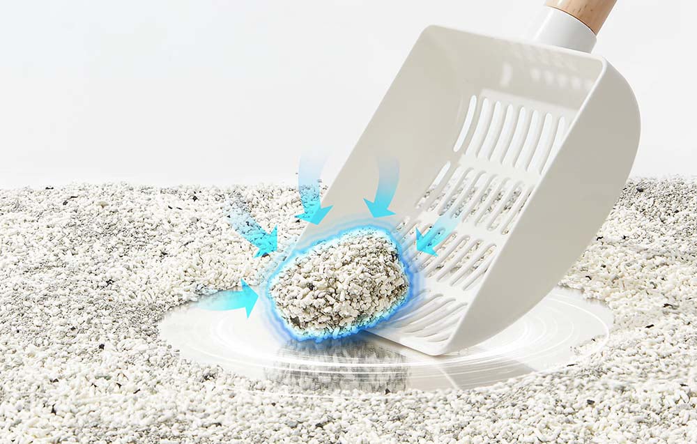 Az alom azonnal magába szívja a nedvességet, és kemény, tömör csomókat képez, amelyek nem bomlanak szét, amikor felveszi őket. Ez minimalizálja a termékfogyasztást, és kevesebb erőfeszítéssel tartja tisztán az alomtálat.
