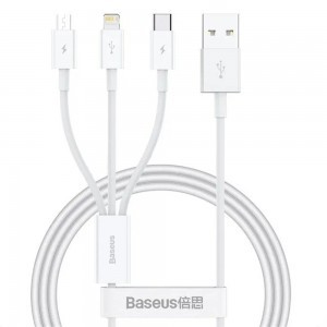 Baseus - Adatkábel Gyors Töltéssel, USB-ről USB-C, Lightning, Micro-USB csatlakozóra, 100W, 480Mbps, 1.5m hosszú - Fehér 5 800 Ft Termék adatlap