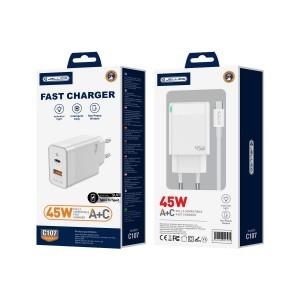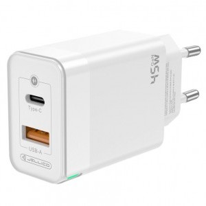 JELLICO fali töltő C107 GaN PD 45W 1xUSB-C + 1xUSB QC3.0 + kábel USB-C - USB-C Fehér 4 700 Ft Termék adatlap