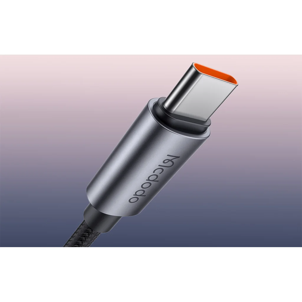 A Mcdodo CA-5740 kábel finom LED háttérvilágítással rendelkezik, amely nemcsak a töltési folyamatot jelzi, hanem sötétben is könnyen megtalálhatóvá teszi. Ez egy praktikus megoldás, amely növeli a használati kényelmet, különösen éjszaka vagy rosszul megvilágított helyeken. Ráadásul a fény elég szolid ahhoz, hogy ne vakítson, miközben tökéletesen látható marad.