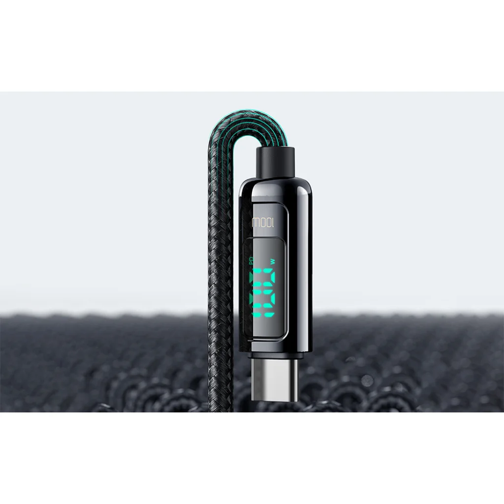 Az E-marker chipnek köszönhetően a kábel automatikusan beállítja az áramerősséget a csatlakoztatott eszközhöz, garantálva a gyors és biztonságos töltést. Ezen felül a beépített kijelző valós időben jelzi a töltési teljesítményt, lehetővé téve a töltési folyamat valós idejű nyomon követését.