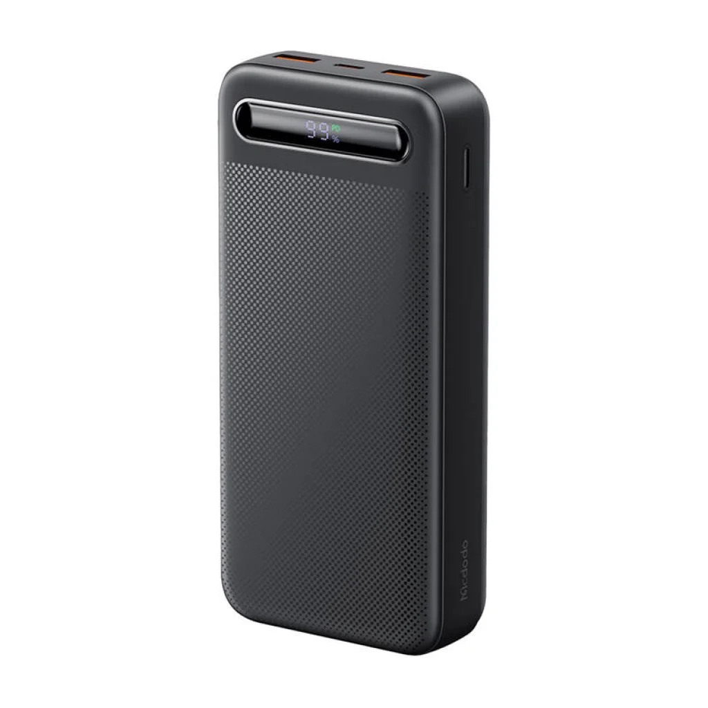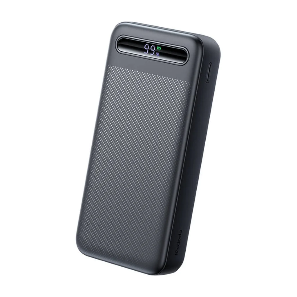 Powerbank Mcdodo MC-3891 Digital Display 20,000 mAh, 22.5W PD (fekete). A 20,000 mAh kapacitású powerbank ideális megoldás azoknak a felhasználóknak, akik megbízható áramforrásra vágynak. Számos gyorstöltési protokoll támogatással rendelkezik, ami lehetővé teszi különböző eszközök gyors és biztonságos töltését. A legfeljebb 22.5W kimeneti teljesítménye és 20W PD (Power Delivery) támogatása iPhone-okhoz négyszer gyorsabb töltést biztosít a hagyományos powerbankokhoz képest. Ezenkívül a digitális LED kijelző és a többszintű védelem megbízható eszközzé teszi, amely ideális hosszú utazásokhoz.