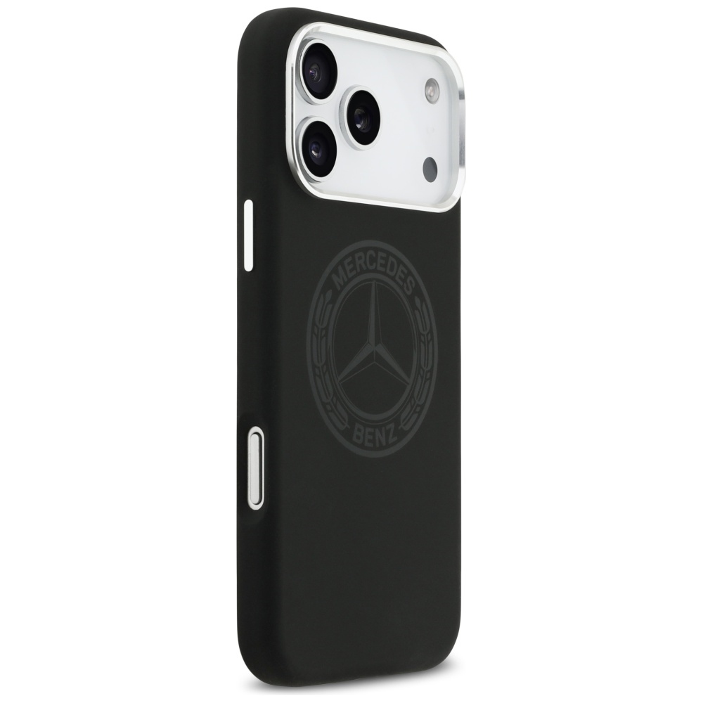 Mercedes-Benz Szilikon Retro Logós MagSafe tok A Mercedes-Benz autók belső dizájnjára jellemző lenyűgöző esztétika részletesen átkerült a kiváló minőségű szilikonból készült Szilikon Retro Logós MagSafe tokra. Ez nemcsak a márkára jellemző részletekre való odafigyelés eredménye, hanem egy modern megközelítés kifejeződése is, tartós és környezetbarát anyagok felhasználásával. Tökéletes választás az összes MagSafe technológiával rendelkező készülék tulajdonosának. Egyedi megjelenés és kivételes minőség Az exkluzív Mercedes Szilikon Retro Logós MagSafe tok elegancia, osztály és modern stílus kombinációja. A tok hátulja kiváló minőségű folyékony szilikonból készült, amely kellemes tapintású, karcálló, és biztos fogást nyújt használat közben. A hátulját két jellegzetes márkalogó díszíti—egy dombornyomott Mercedes-Benz logó középen, és egy ezüst logó a tok alján—amely különleges, luxus hangulatot kölcsönöz az kiegészítőnek. A precíz kivágások és pontosan illeszkedő oldalsó gombok kiegészítik a dizájnt, hangsúlyozva a részletekre való odafigyelést és a legmagasabb minőségű kidolgozást. A tok a MagSafe rendszert tartalmazza, amely biztosítja a teljes kompatibilitást az Apple mágneses kiegészítőkkel. Ez a tökéletes funkcionalitás, védelem és kifinomult dizájn kombinációja, amely megőrzi az iPhone biztonságát és elegáns, időtálló megjelenést kölcsönöz neki. Szilárd szerkezet és tökéletes illeszkedés A gondosan kiválasztott méreteknek köszönhetően a tok hatékonyan elnyeli az ütéseket, miközben teljes hozzáférést biztosít a portokhoz és gombokhoz. A tok oldalai rugalmasak, így könnyű az összeszerelés és szétszerelés, de mindenekelőtt tökéletesen védik a készülék keretét a behatások vagy potenciális sérülések ellen. Az enyhén megemelt külső élek megóvják a telefon képernyőjét a sérülésektől, míg a kamera lencséje körüli megemelt külső élek megóvják az optikát a törésektől vagy karcolásoktól. Vezeték nélküli töltés A tok tartalmaz egy mágneses gyűrűt, amely kompatibilis a MagSafe vezeték nélküli töltővel, biztosítva a gyors és egyszerű töltést. A tok beépített mágnesei tökéletesen igazodnak a felhasználó telefonjához, és biztosítják az erős kapcsolatot a MagSafe töltővel. A tokot a Mercedes-Benz engedélyével gyártották. Műszaki adatok Mercedes Szilikon Retro Logós MagSafe Gyűjtemény Típus Kemény tok Anyag Szilikon Szín Fekete Kompatibilitás iPhone 17 Pro Max