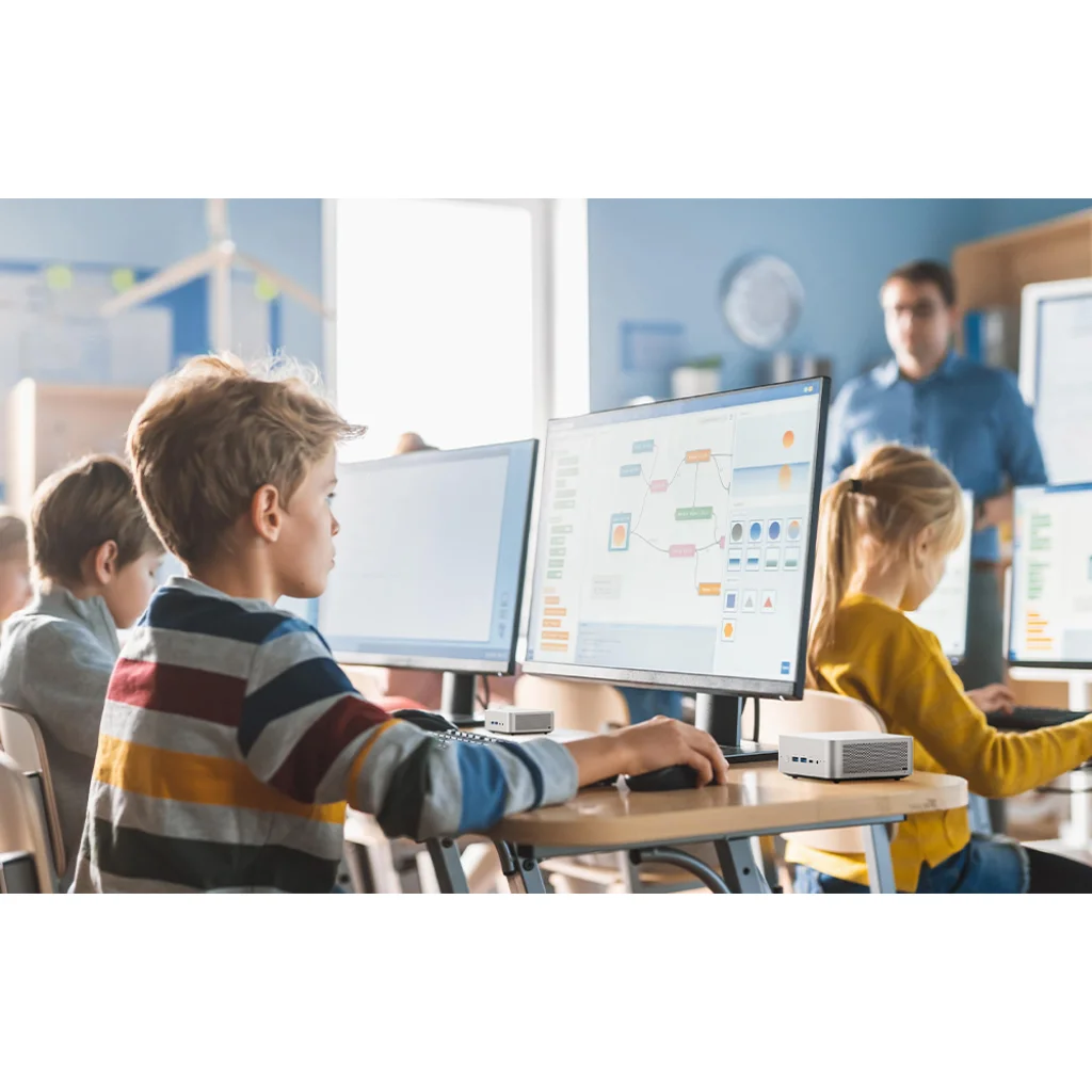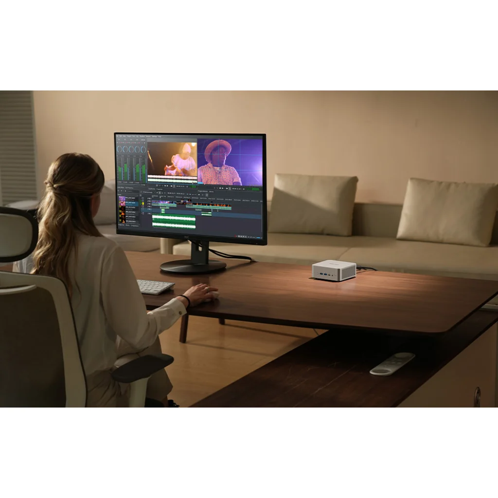 A Minis Forum X1-255 egy nagy teljesítményű PC, amely egyaránt alkalmas irodai munkára és igényesebb feladatokra. Nagy teljesítményű AMD Ryzen™ 7 processzorral és számos csatlakozóval felszerelve lehetővé teszi a konfiguráció szabad testreszabását. Kompakt méreteinek (128 x 126,5 x 52,5 mm) köszönhetően gyakorlatilag bárhol elfér – íróasztalon, monitor mögött vagy szűkös munkaterületen.