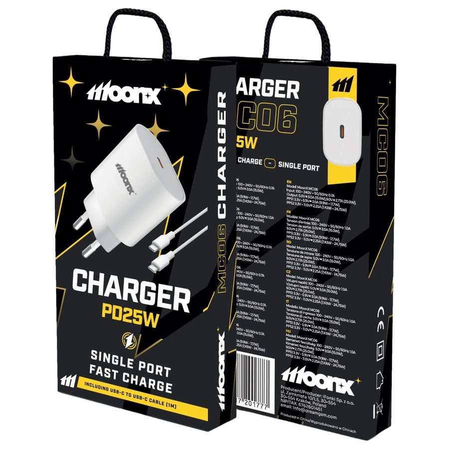 MOONX fali töltő MC06 PD 25W 1xUSB-C + kábel USB-C - USB-C Fehér