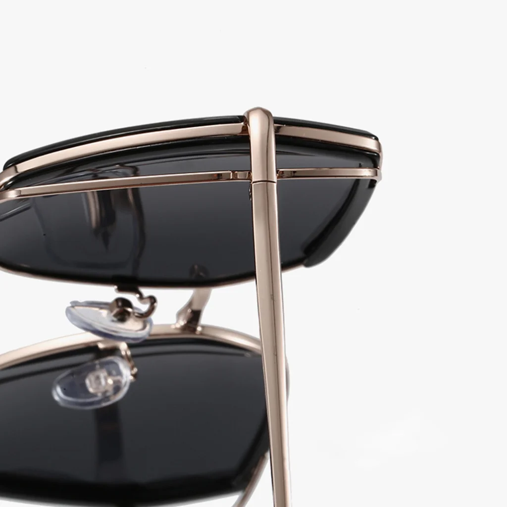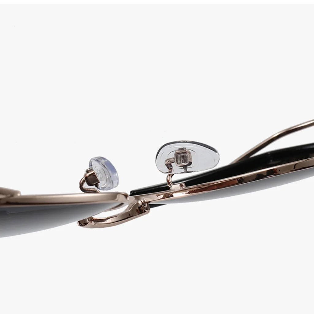 A Techsuit Polarized (9768) napszemüveg nem csak szemet gyönyörködtető, hanem a kényelmet is előtérbe helyezi. A vékony, de masszív fém keret garantálja a tartósságot anélkül, hogy nehéznek éreznéd. Az állítható, puha szilikon orrpárnák gondoskodnak a személyre szabott és stabil illeszkedésről, így egész napos viselet során is maximális komfortot nyújtanak. A gondosan kidolgozott zsanérok és a precíz illesztések a minőség és a részletekre való odafigyelés jelei.