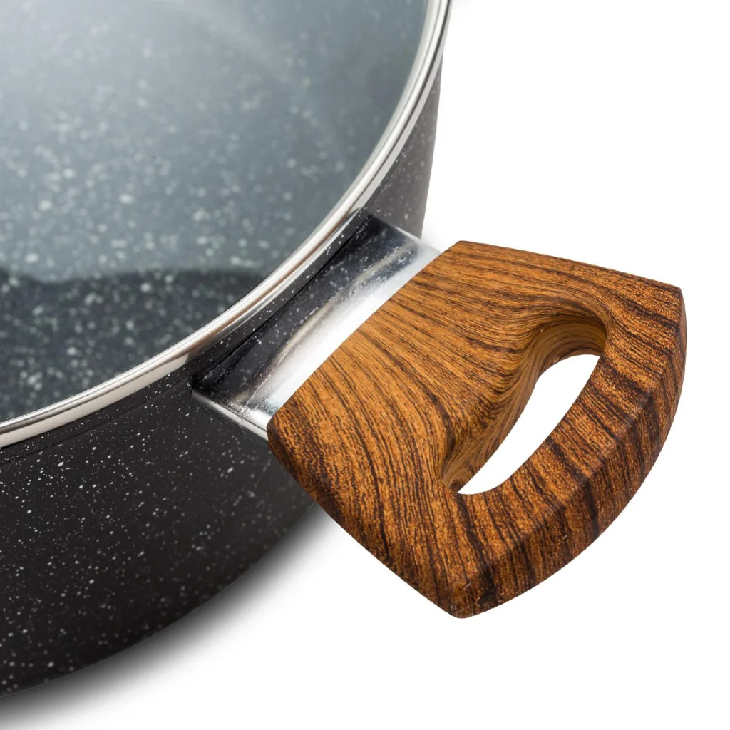 A kiváló és tartós tapadásmentes bevonat nagy ellenállást biztosít a karcolásokkal és a magas hőmérsékletekkel szemben. A gyártás során kis szén-dioxid-kibocsátású eljárásokat alkalmaznak, és a PFOA-t kiiktatják. Az öt rétegű tapadásmentes belső bevonat hosszú tartósságot biztosít a mindennapos használathoz, és tökéletes, egészséges főzési élményt garantál úgy, mintha természetes kövön sütne vagy főzne. A csúszásmentes, ergonomikus, fa mintázatú fogantyú még órákig tartó főzés után is hűvös marad, és könnyű használatot tesz lehetővé. A Nava Nature lábas hirtelen hőmérséklet-változásoknak ellenáll, és nagyon könnyen tisztítható.