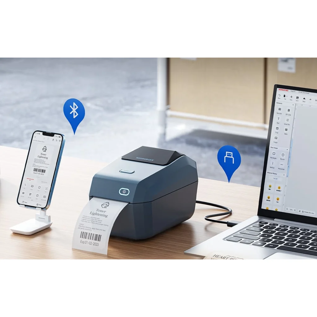 A Niimbot K3W nyomtató számos eszközzel és operációs rendszerrel kompatibilis, beleértve az Androidot, iOS-t és a Windows 7/10-et, valamint egyszerre párosítható 10 okostelefonnal (x3 iOS és x7 Android). A Wi-Fi, Bluetooth és USB kapcsolatok megkönnyítik és felgyorsítják az eszközökhöz való csatlakozást, növelve a kényelmet. Ez lehetővé teszi, hogy közvetlenül okostelefonokról, tabletekről vagy számítógépekről nyomtasson címkéket, jelentősen javítva a munkafolyamatot.
