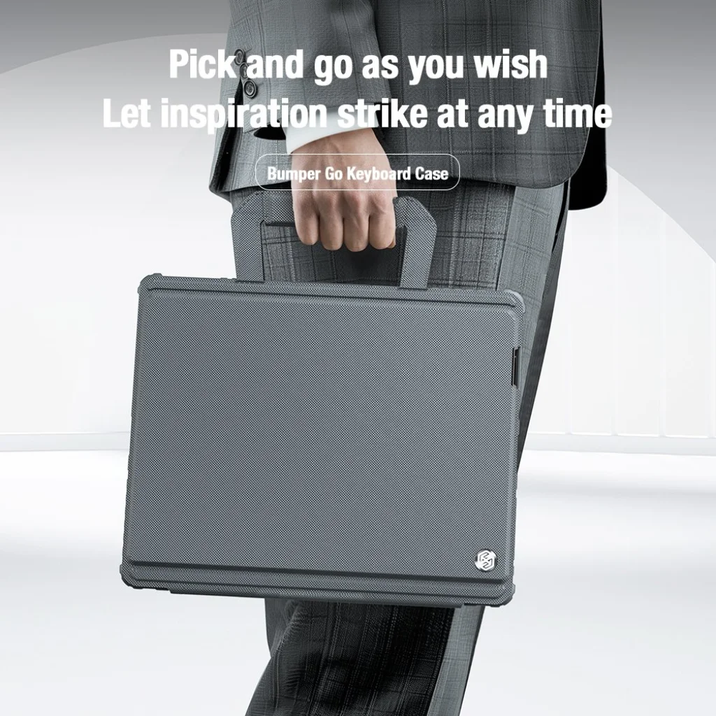 A Nillkin Bumper GO billentyűzetes tok egy többfunkciós tablet-védőtok, levehető háttérvilágított billentyűzettel, Apple Pencil nyílással és folyamatosan állítható tablet szöggel.