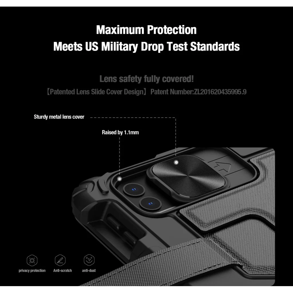 - Csúsztatható kameravédő fedél