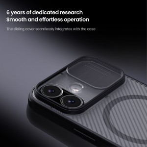 A Nillkin CamShield PRO a védelem új generációját képviseli, amely a klasszikus CamShield funkcionalitását továbbfejlesztve, két anyagból készült kivitelt kínál a maximális biztonság érdekében. A tok hátsó része erős és tartós PC (polikarbonát) műanyagból készült, beleértve a kamera lencsevédőjét is, amely kiválóan ellenáll a karcolásoknak és ütéseknek. A keret lágyított TPU (termoplasztikus poliuretán) anyagból áll, amely rugalmasságának köszönhetően tökéletesen elnyeli az ütéseket, így a telefon szélei és sarkai a lehető legjobban védve vannak.