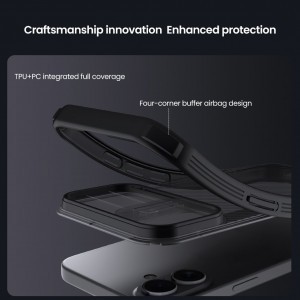 A Nillkin CamShield PRO egy egyedülálló tok csúsztatható kamera lencsevédővel. A klasszikus CamShield-tól eltérően, két anyagból áll. A tok hátulja erős és tartós műanyagból készült, beleértve a kamera fedelét is. A tok kerete lágyított TPU műanyagból készült, a telefon széleinek és sarkainak legjobb védelme érdekében. Mindkét anyag nagyon ellenálló a kopással szemben, de az ujjlenyomatokkal és zsírokkal szemben is. A precíz kivágások a vezérlőelemek és a szükséges csatlakozók számára kényelmes telefonhasználatot biztosítanak.