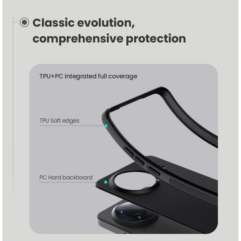 A hátoldala kemény és tartós műanyagból, az oldalak pedig TPU puha műanyagból állnak.
