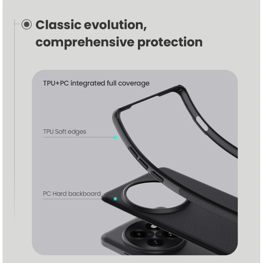 Kemény és tartós műanyagból áll a hátoldalon és TPU puha műanyagból az oldalakon.